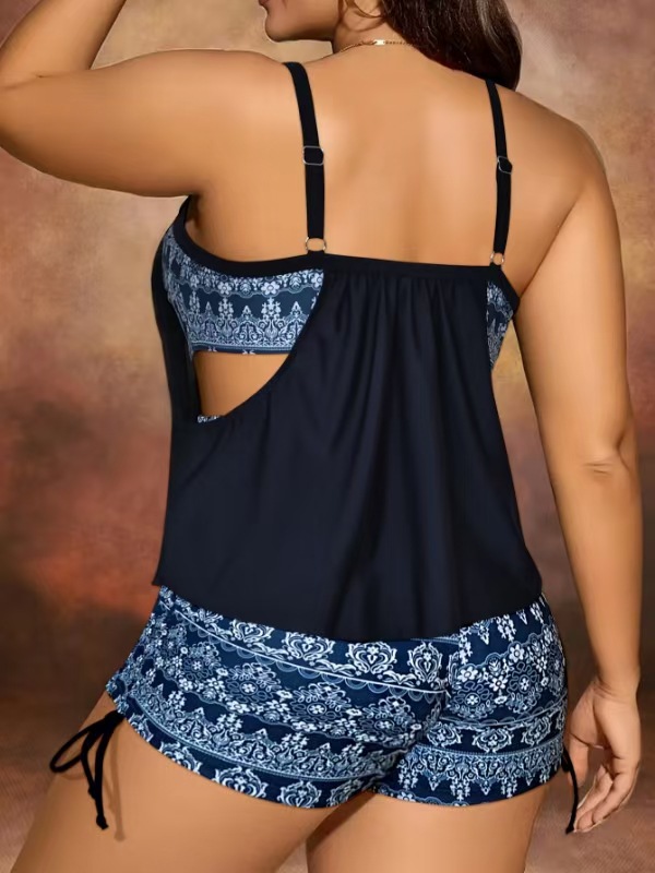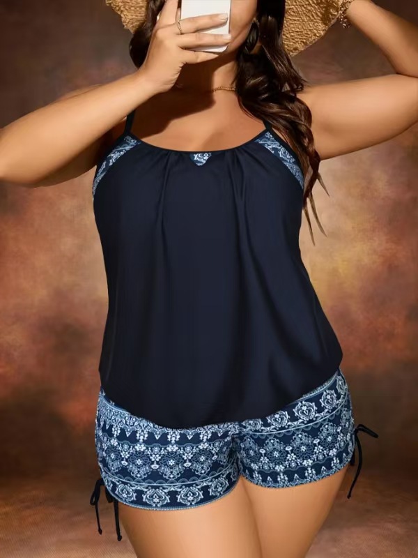 2025 유럽과 미국의 새로운 크로스보더 프린트 배를 덮는 슬리밍 복서 팬티 대형 타키니 보수적 휴가 온천 수영복