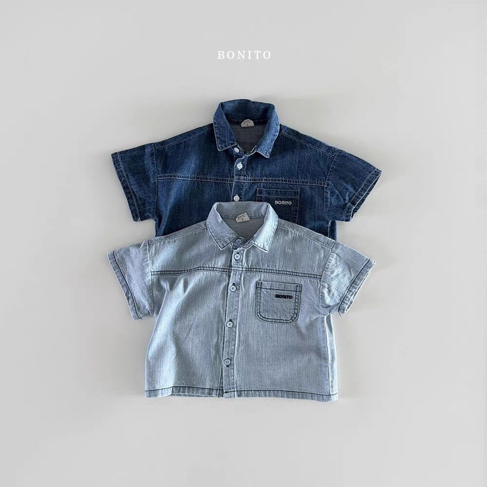 한국 아기 소년 소녀 반팔 데님 셔츠 반바지 세트 여름 유행 투피스 세트스토어 가기