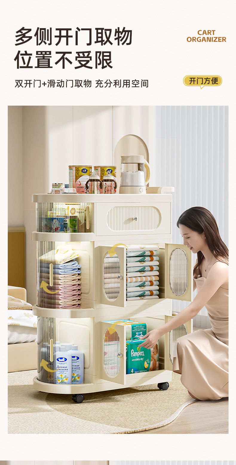 롤러 셔터 트롤리 보관 랙 다층 바닥부터 천장까지 아기 용품 분류 보관 랙 홈 거실 스낵 보관 캐비닛