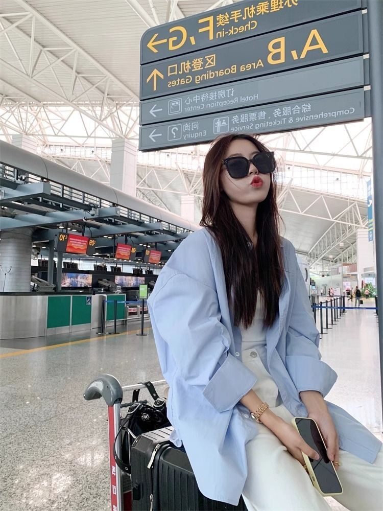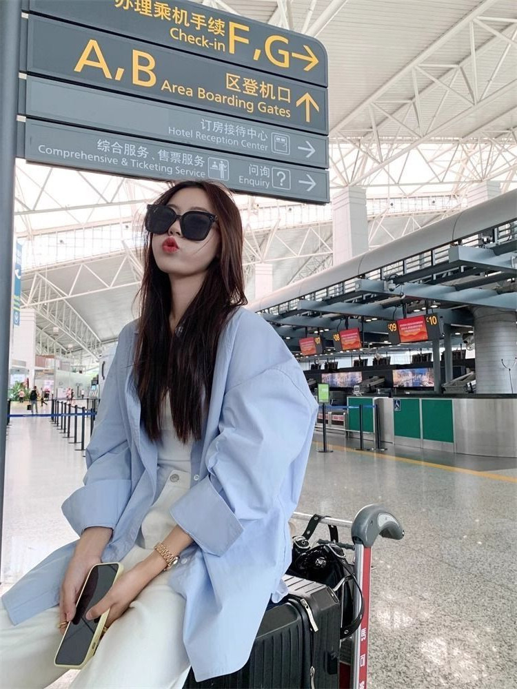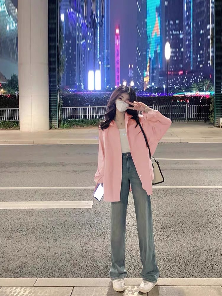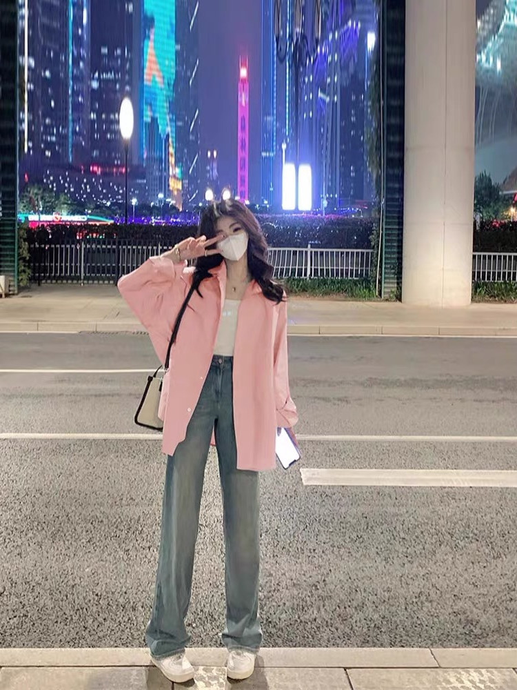 선스크린 셔츠 여자 봄 · 여름 한국식 루즈아우터웨어 슬리밍 올매치 패셔너블 보이프렌드의 긴소매 탑 코트스토어 가기