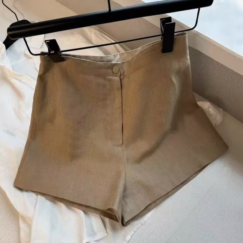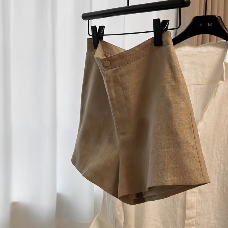 HAO火推荐!老钱风~高支高密卡其色亚麻短裤女袭击新款短裤子
