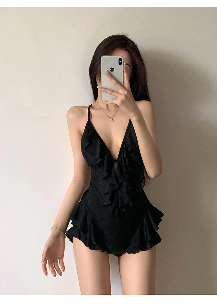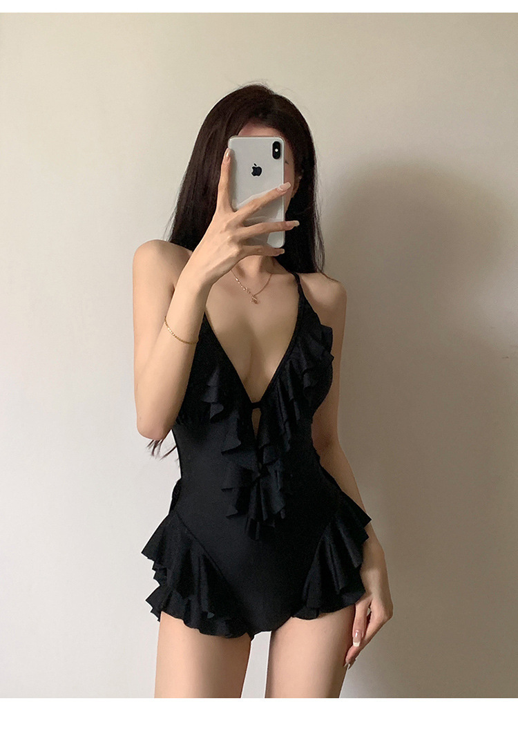 작은 가슴을 가진 여성을 위한 세련된 한국식 원피스 솔리드 컬러 수영복, 푸쉬업, 등이 없는 핫한 여학생 비치 휴가 비키니스토어 가기