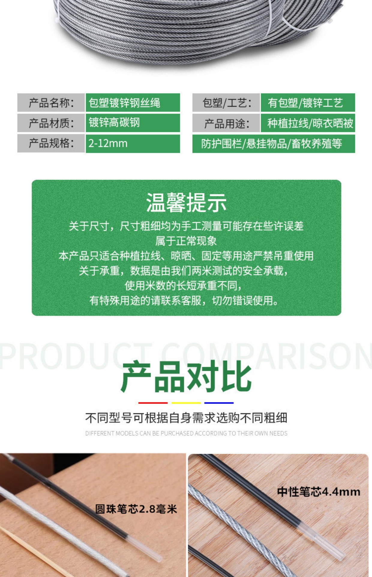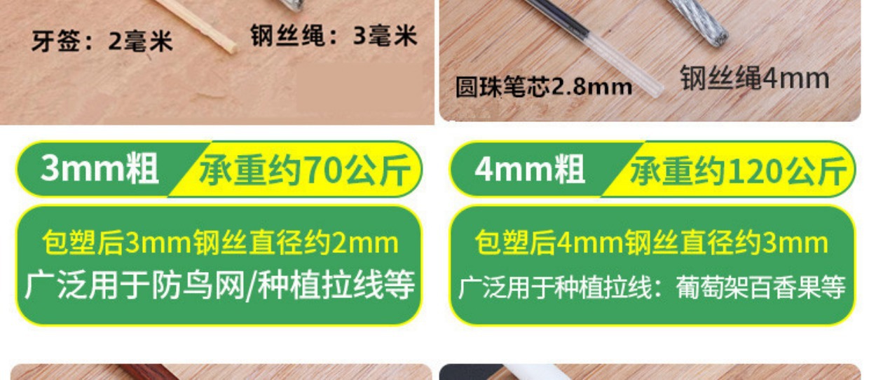 플라스틱 코팅된 아연 도금 강철 와이어 로프 온실 식물 차양 그물 당김 와이어 부드러운 가죽 투명 코팅 3456 8mm 빨랫줄스토어 가기