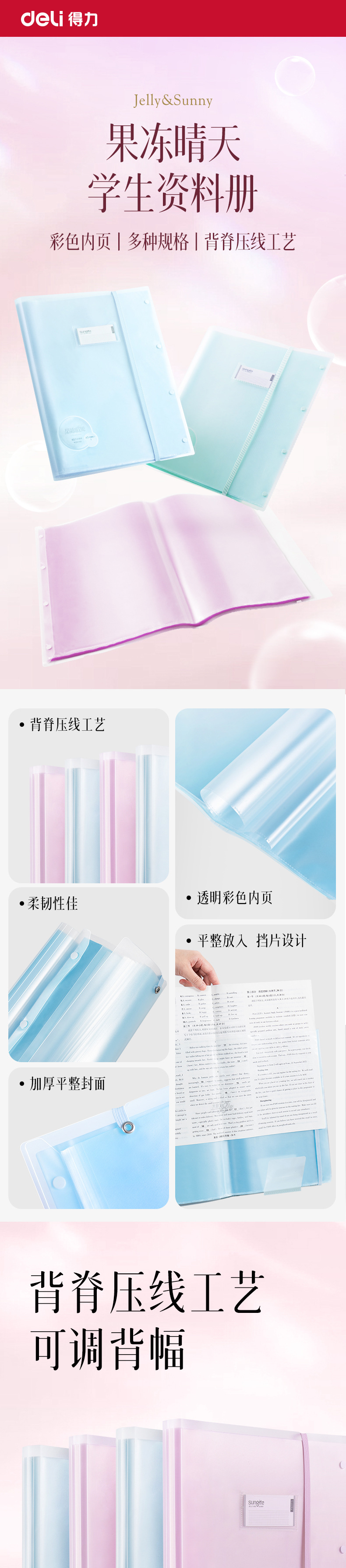 델리 PQ17 젤리 선레이션 30/40/60페이지 시험지 A3 대용량 삽입 투명 시험지 보관 책