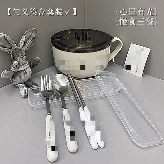 스테인레스 스틸 세 개의 개 뚜껑이 달린 인스턴트 국수 그릇 학생 밥 그릇 일본식 대용량 배수 기숙사 도시락 인스턴트 국수 그릇