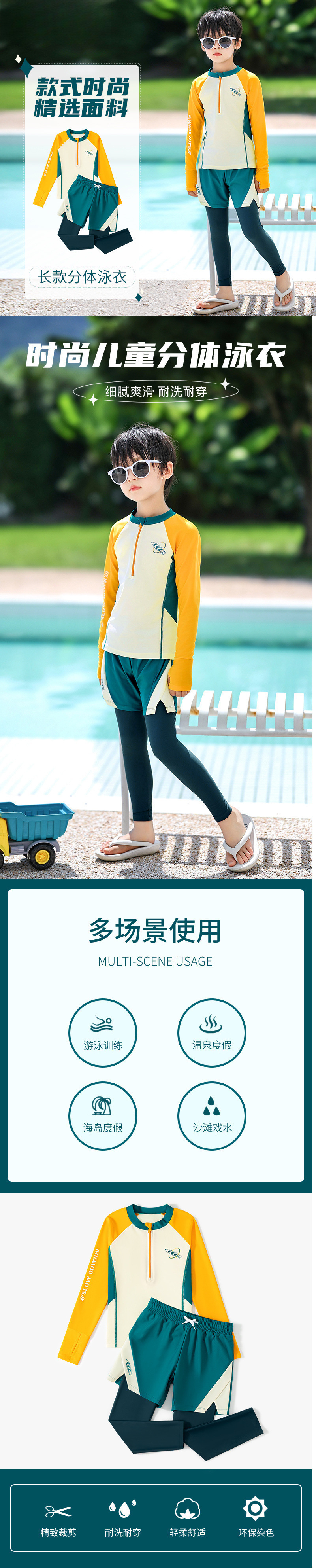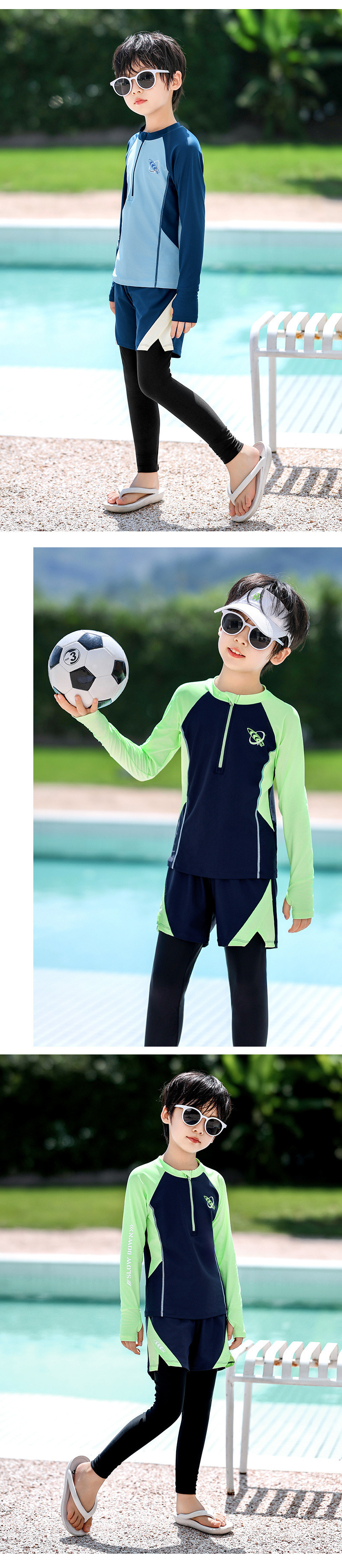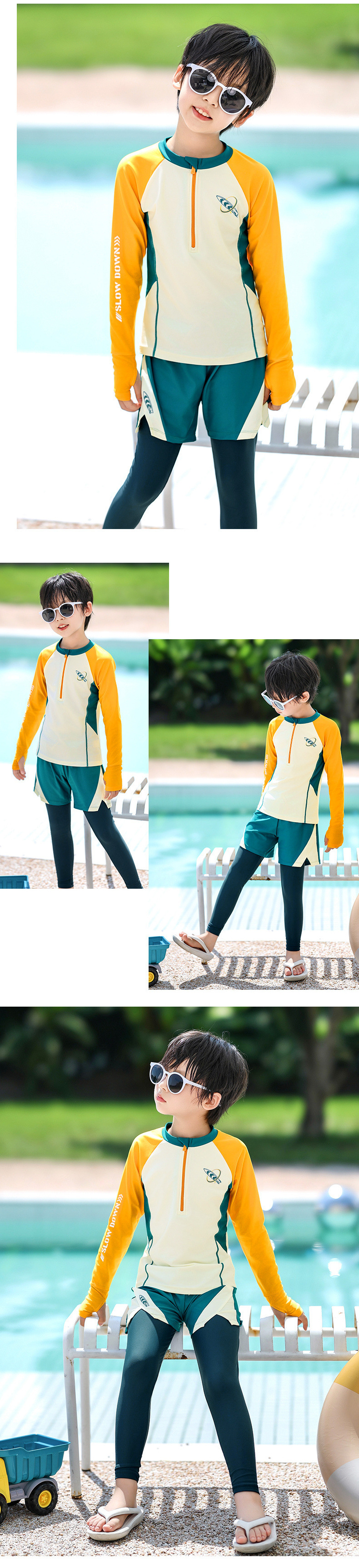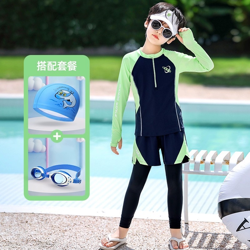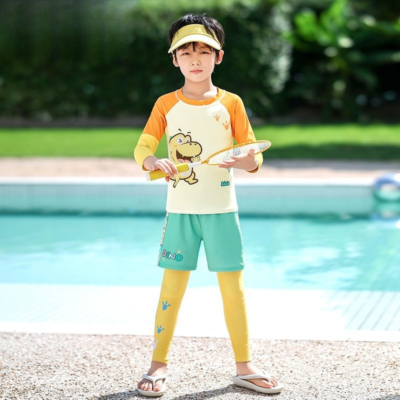 새로운 어린이 수영복 소년 분할 긴팔 양복 새로운 태양 보호 소형, 중형 및 대형 어린이 수영 전문 속건성 수영복