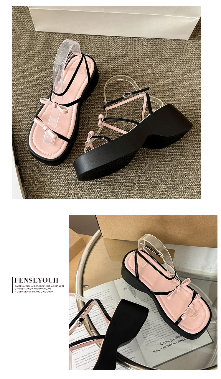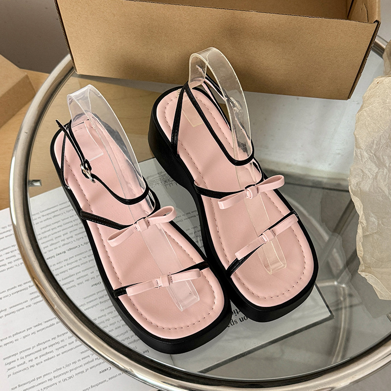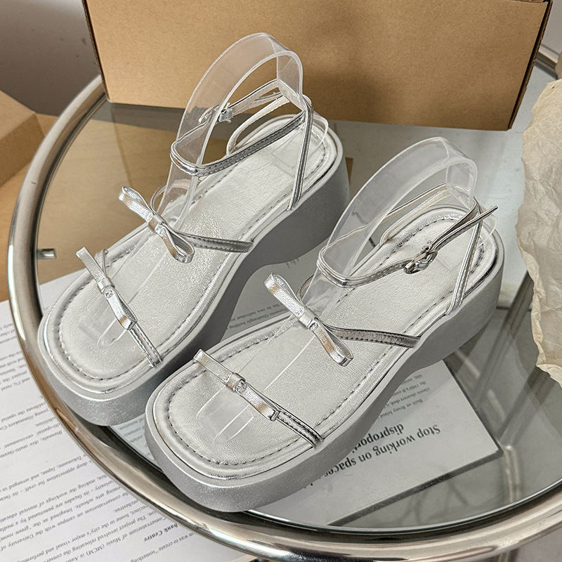 웨지힐 하이힐 보우 프렌치 샌들 요정 신발 2025 신상 여름 두꺼운 밑창 키높이 화이트 샌들스토어 가기