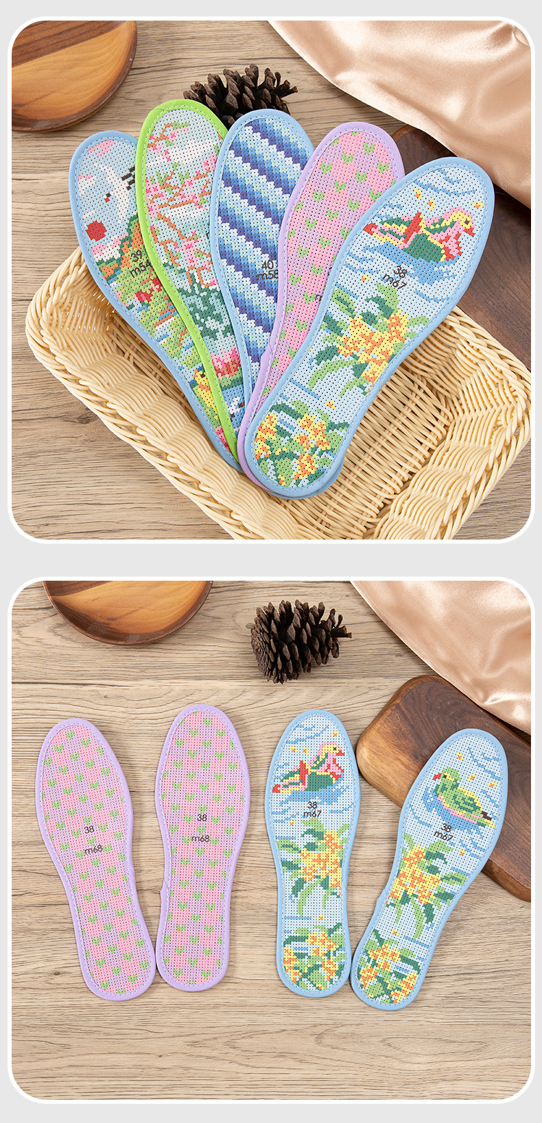 [신제품 체험 가격] 남성용 및 여성용 순면 레이스 크로스 스티치 깔창 11CT 반제품 기하학 스타일