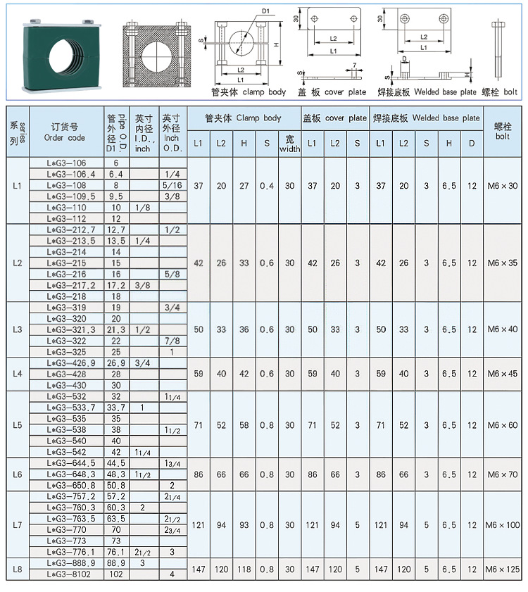 • 경량 단일 구멍 파이프 클램프 60.3mm