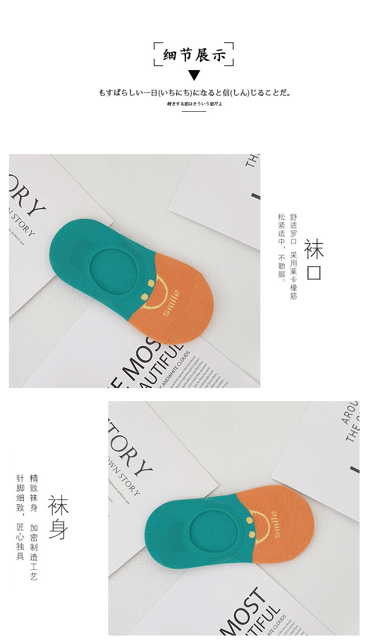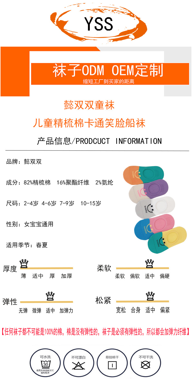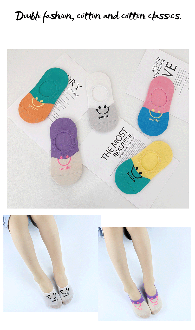 Yishuangshuang 어린이 양말 여름 새로운 만화 웃는 얼굴 보트 양말 빗질면 대비 색상 얕은 입 미끄럼 방지 양말 보이지 않는 양말