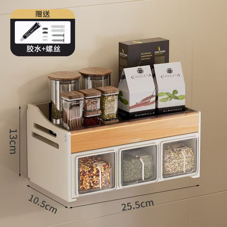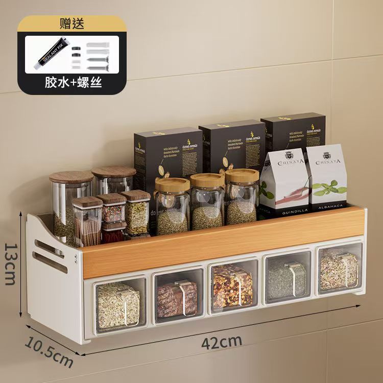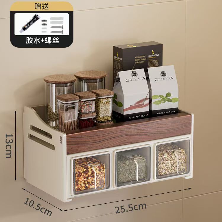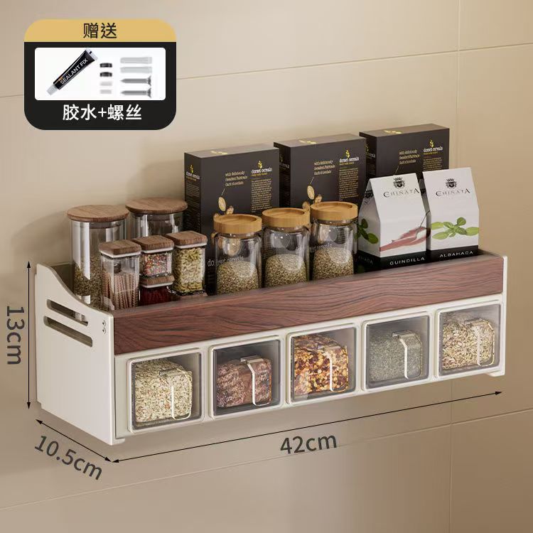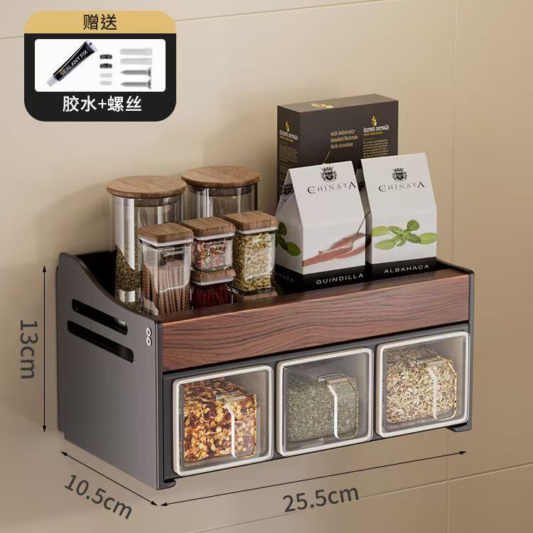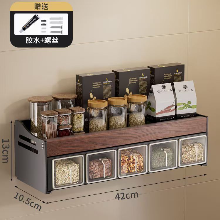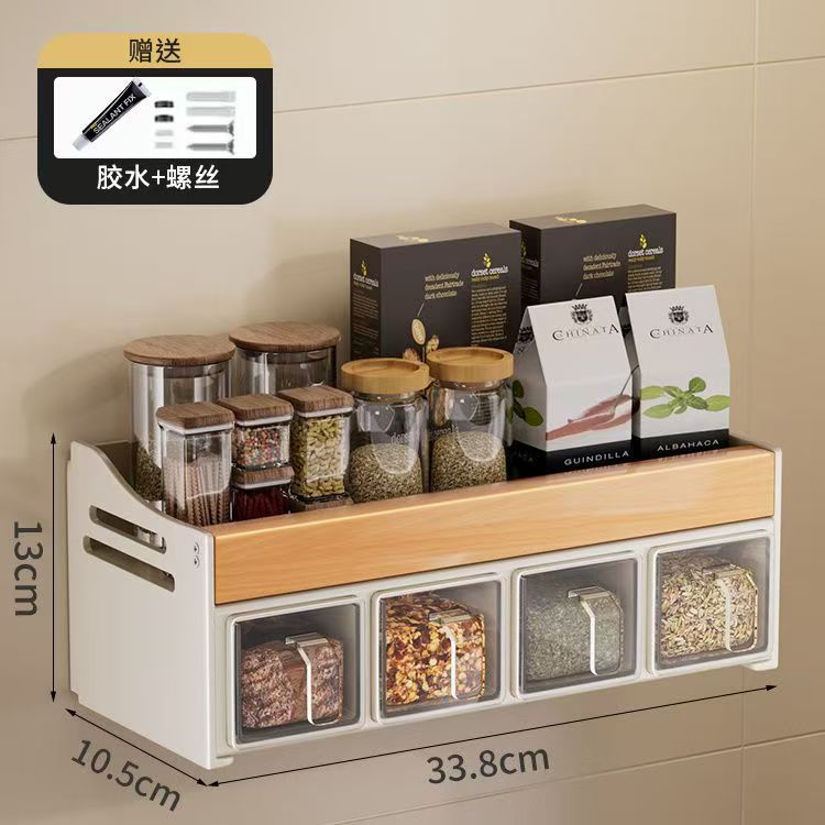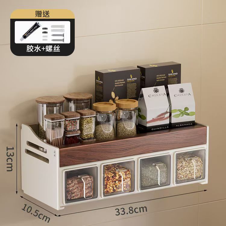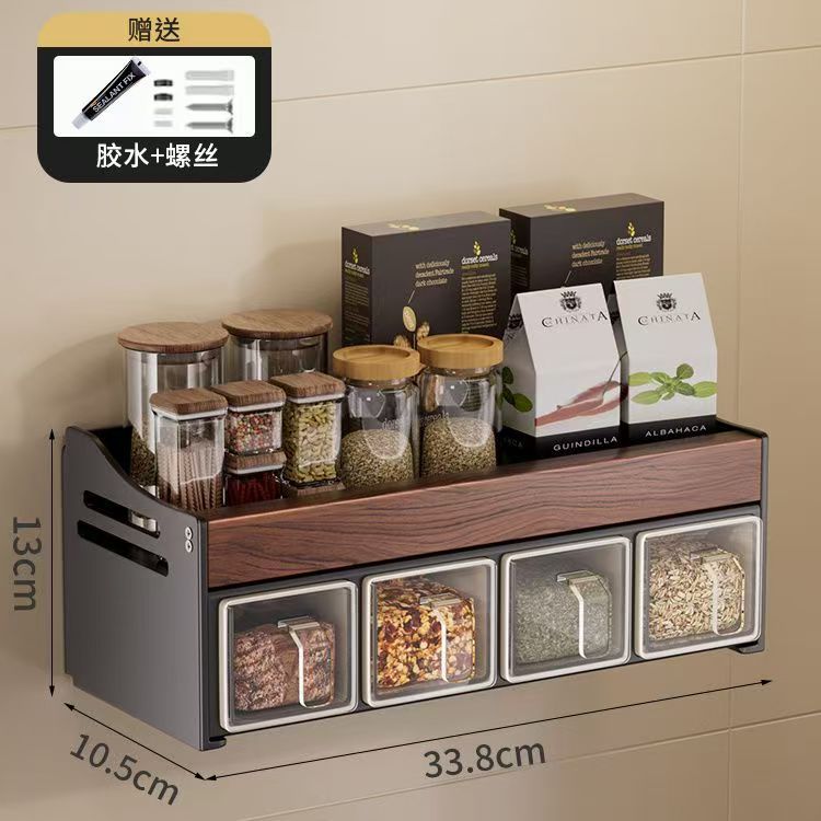 맞춤형 호두나무 중세 스타일 주방 조미료 보관함 다기능 조미료 선반 벽걸이 형 벽 조리대스토어 가기