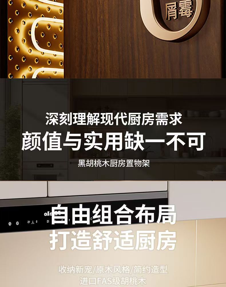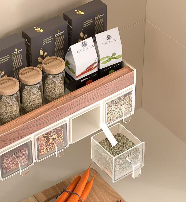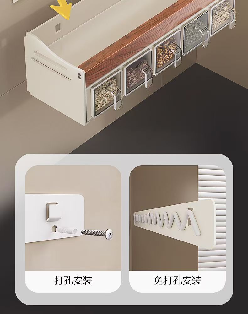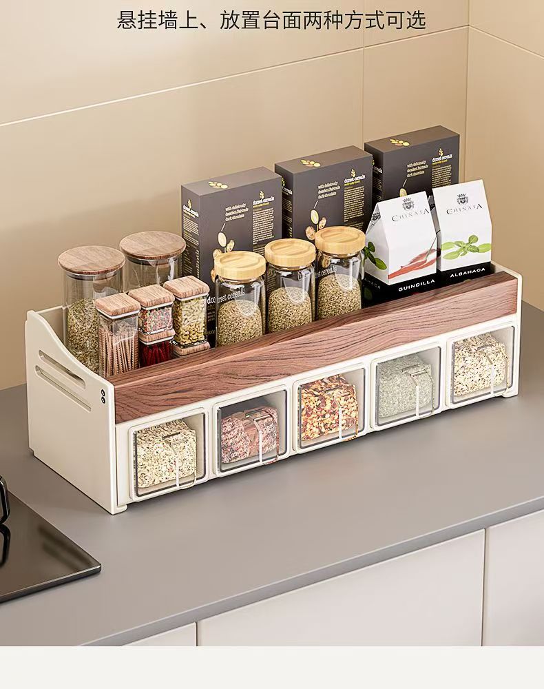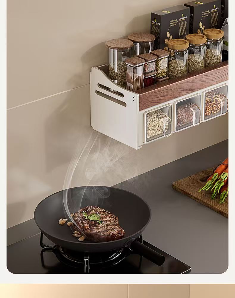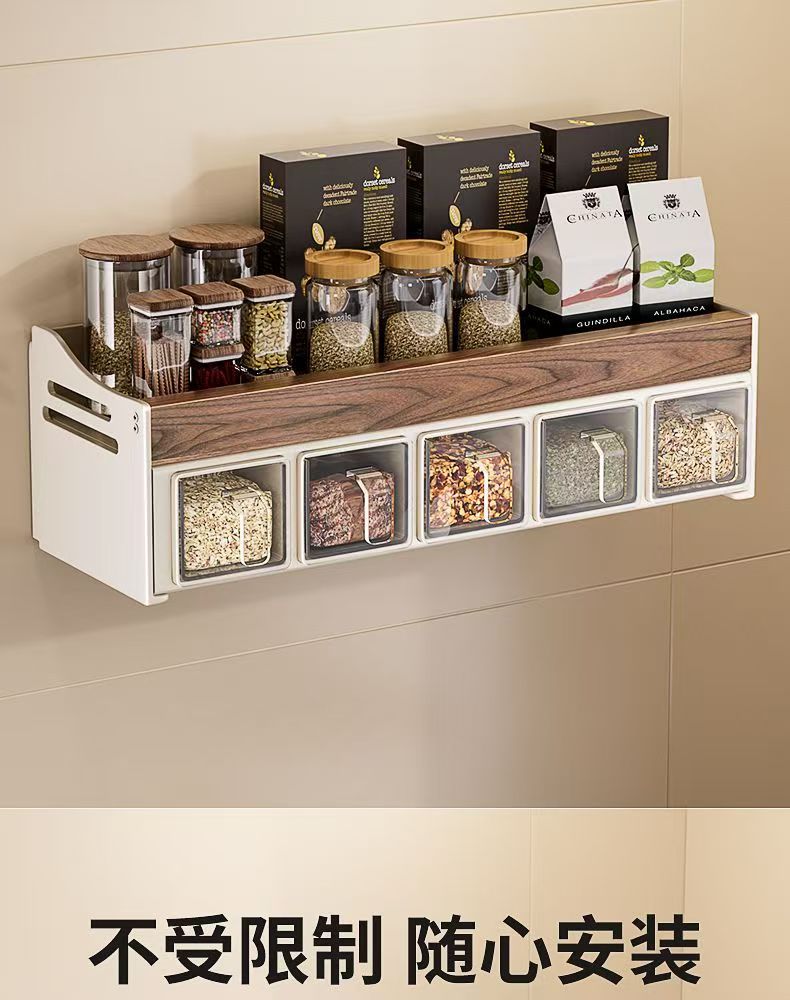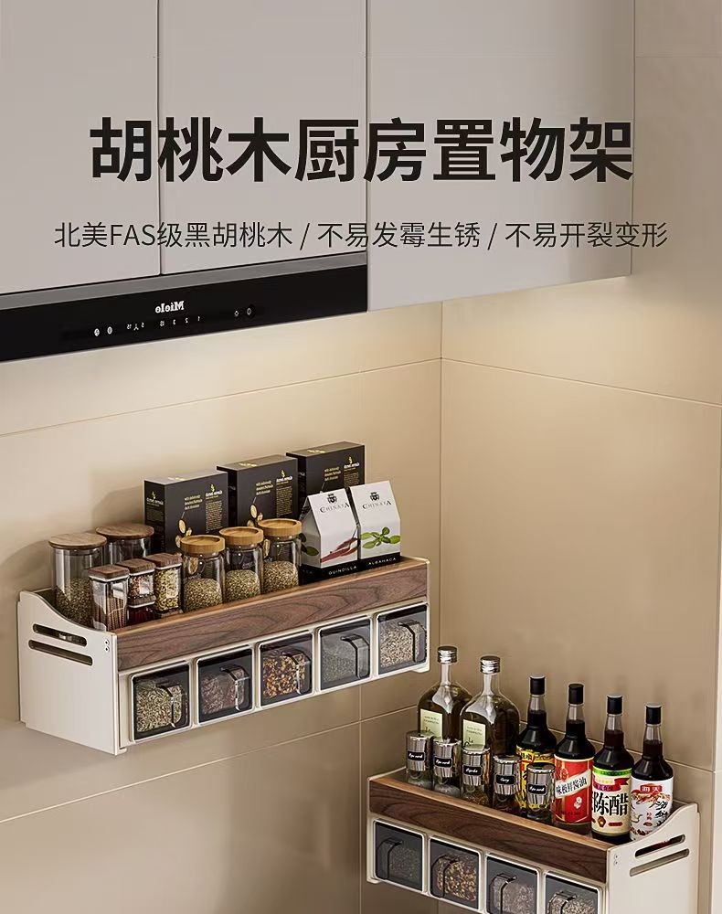 맞춤형 호두나무 중세 스타일 주방 조미료 보관함 다기능 조미료 선반 벽걸이 형 벽 조리대