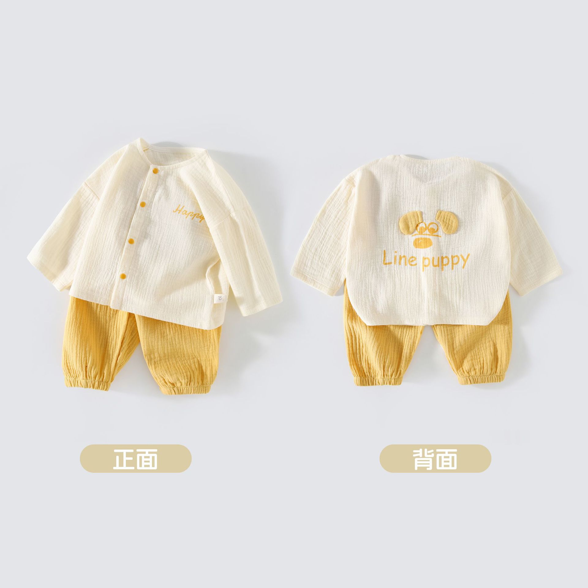 어린이 만화 순면 거즈 세트 아기 봄과 여름 유형 A 투피스 세트 아기 귀여운 소년과 소녀스토어 가기