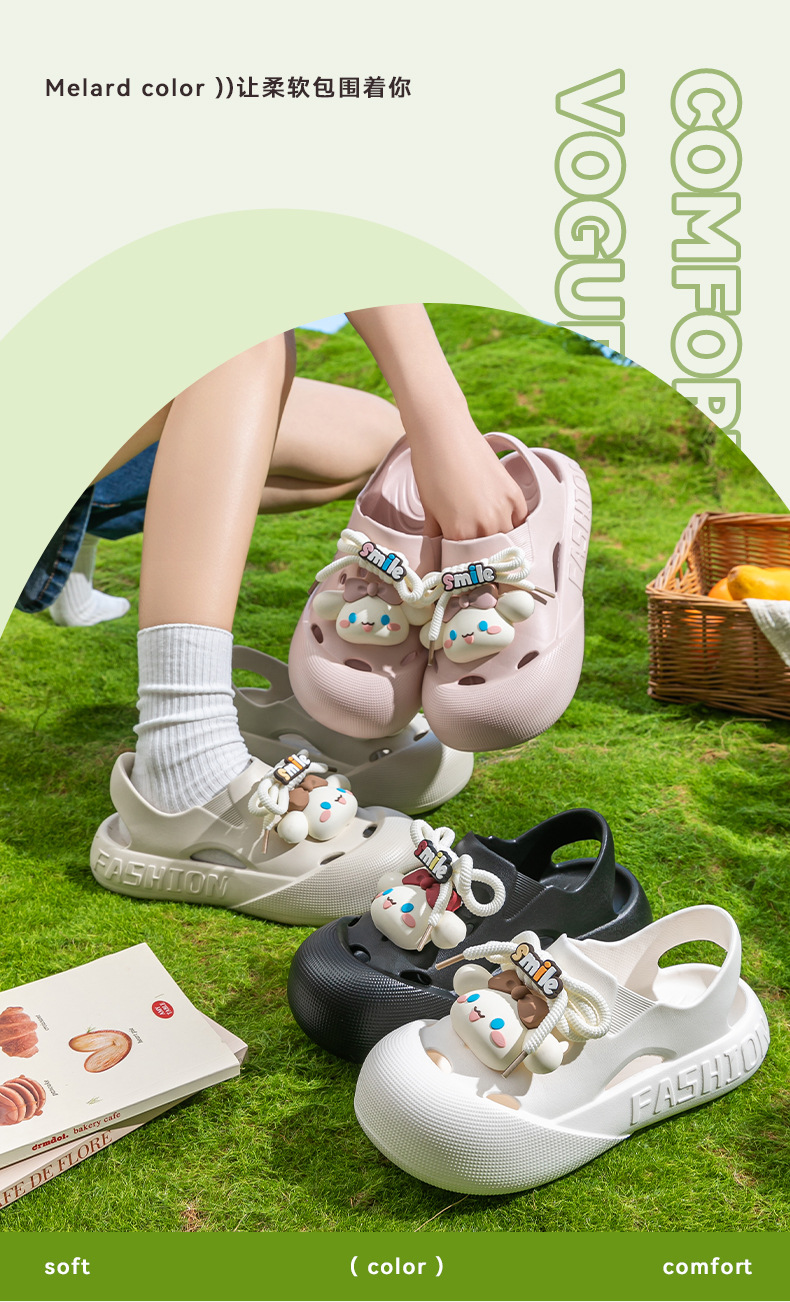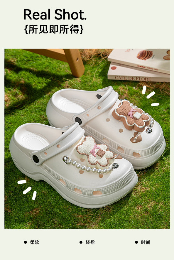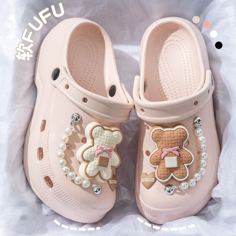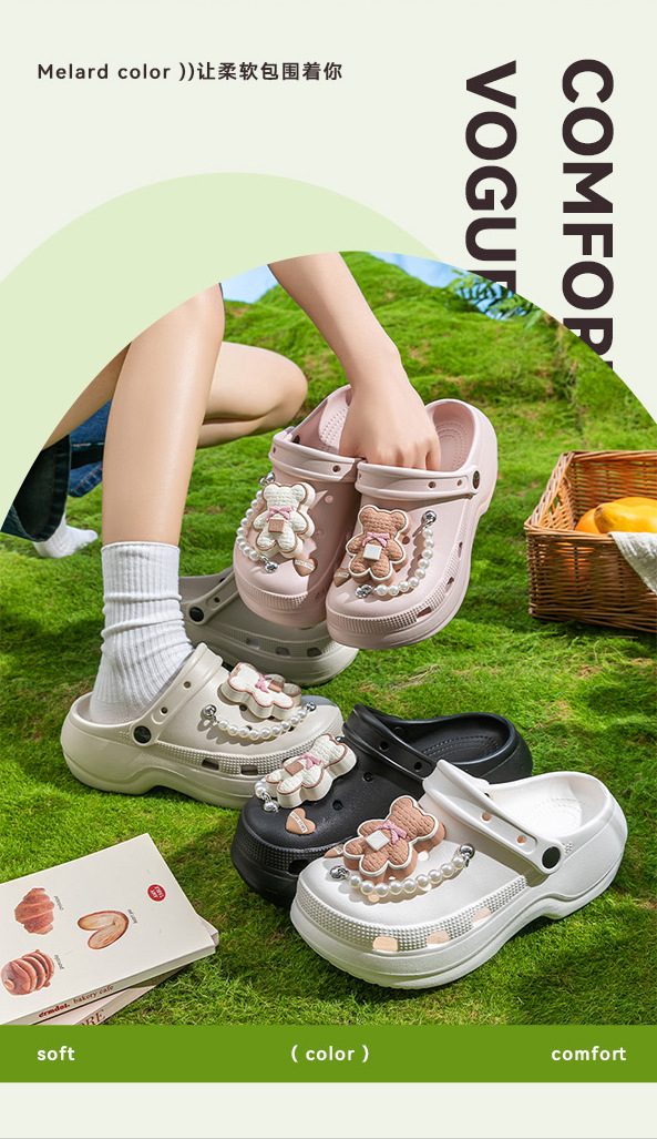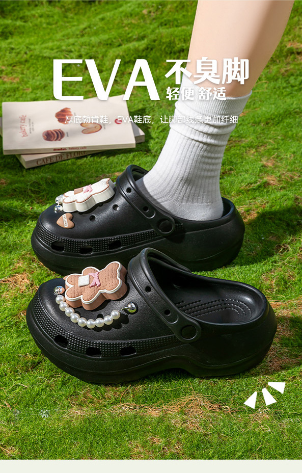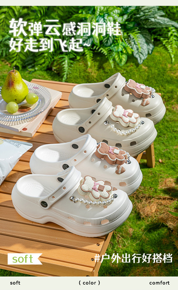 귀여운 구멍 신발 여성의 2025 여름 미끄럼 방지 탈취제 겉옷 두꺼운 단독 높이 증가 EVA 샌들 및 여성용 슬리퍼스토어 가기