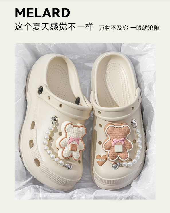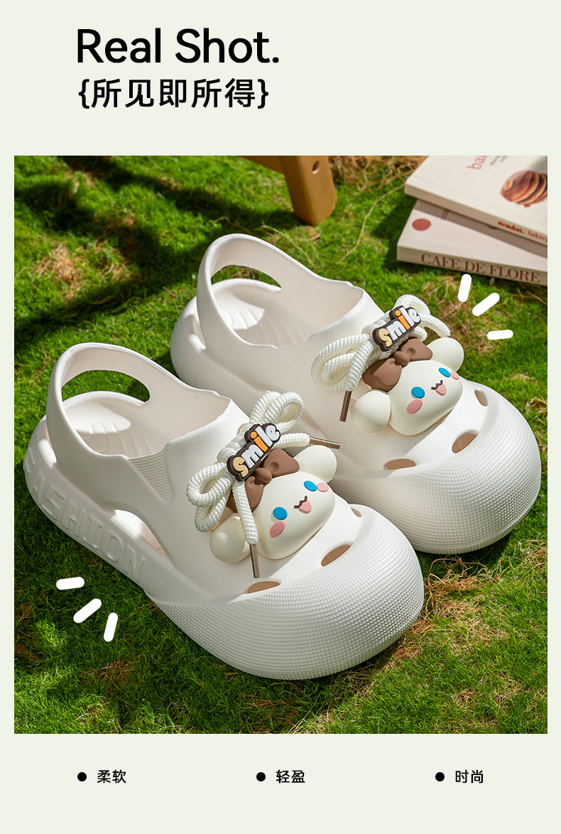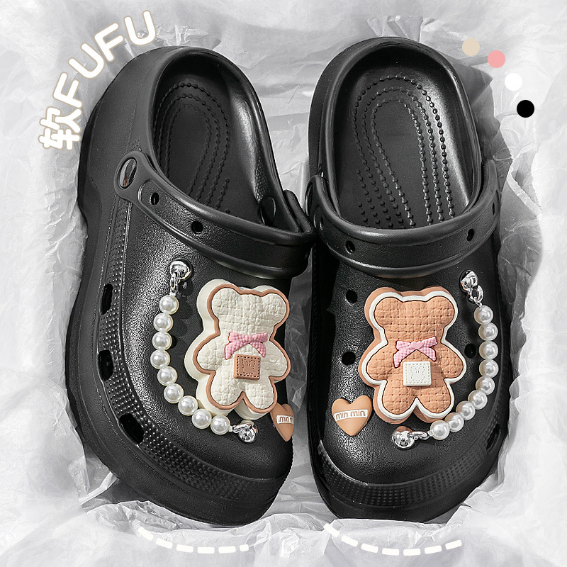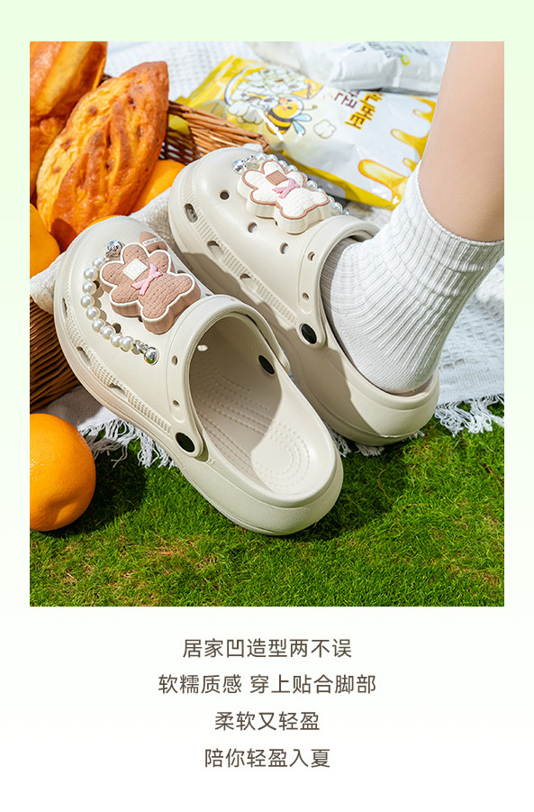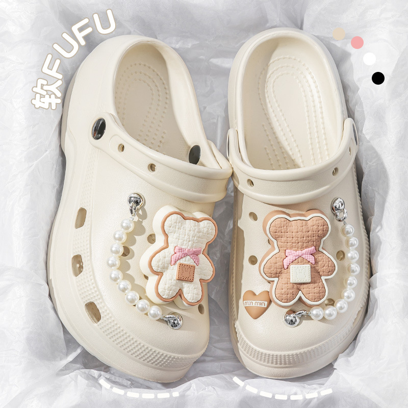 귀여운 구멍 신발 여성의 2025 여름 미끄럼 방지 탈취제 겉옷 두꺼운 단독 높이 증가 EVA 샌들 및 여성용 슬리퍼스토어 가기