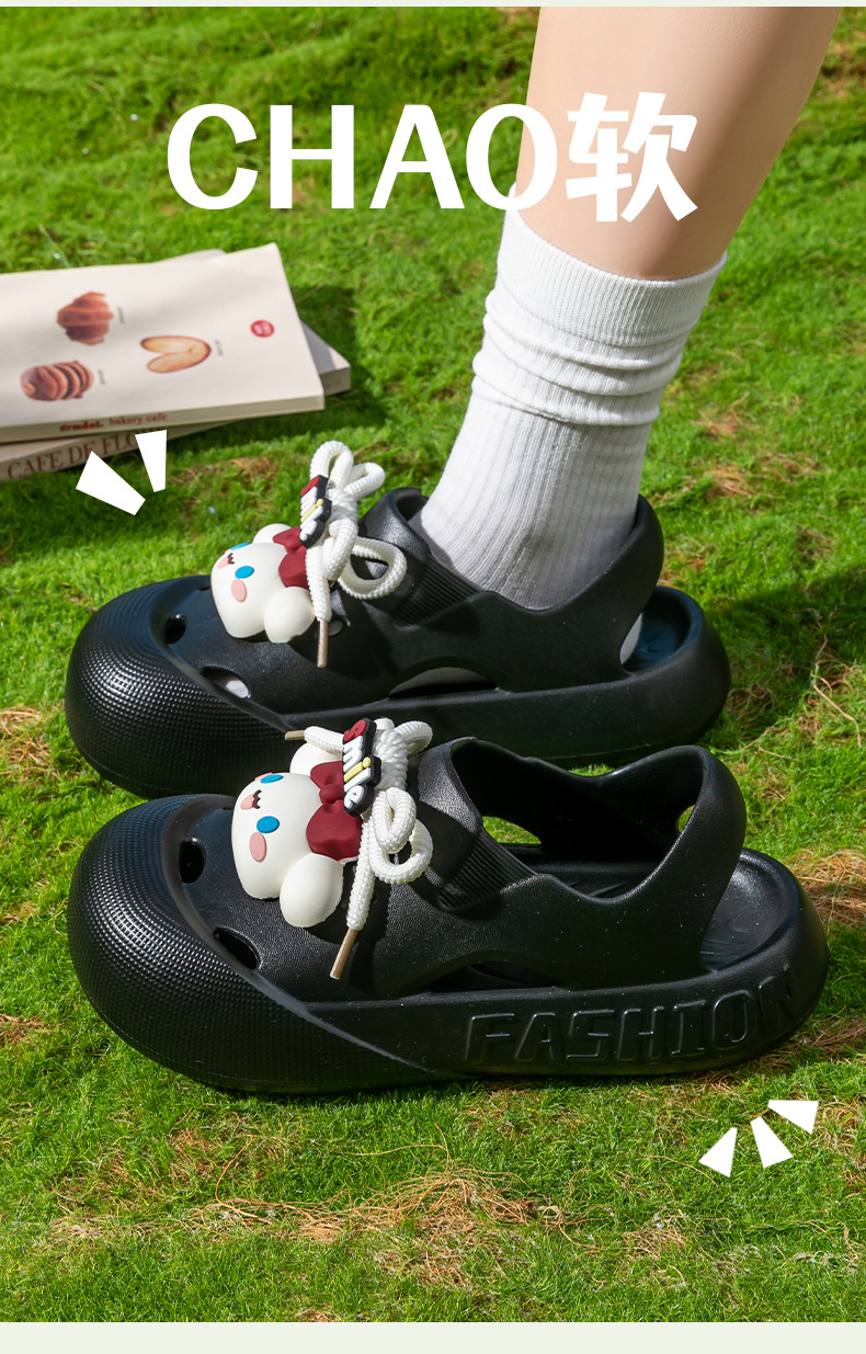 귀여운 구멍 신발 여성의 2025 여름 미끄럼 방지 탈취제 겉옷 두꺼운 단독 높이 증가 EVA 샌들 및 여성용 슬리퍼