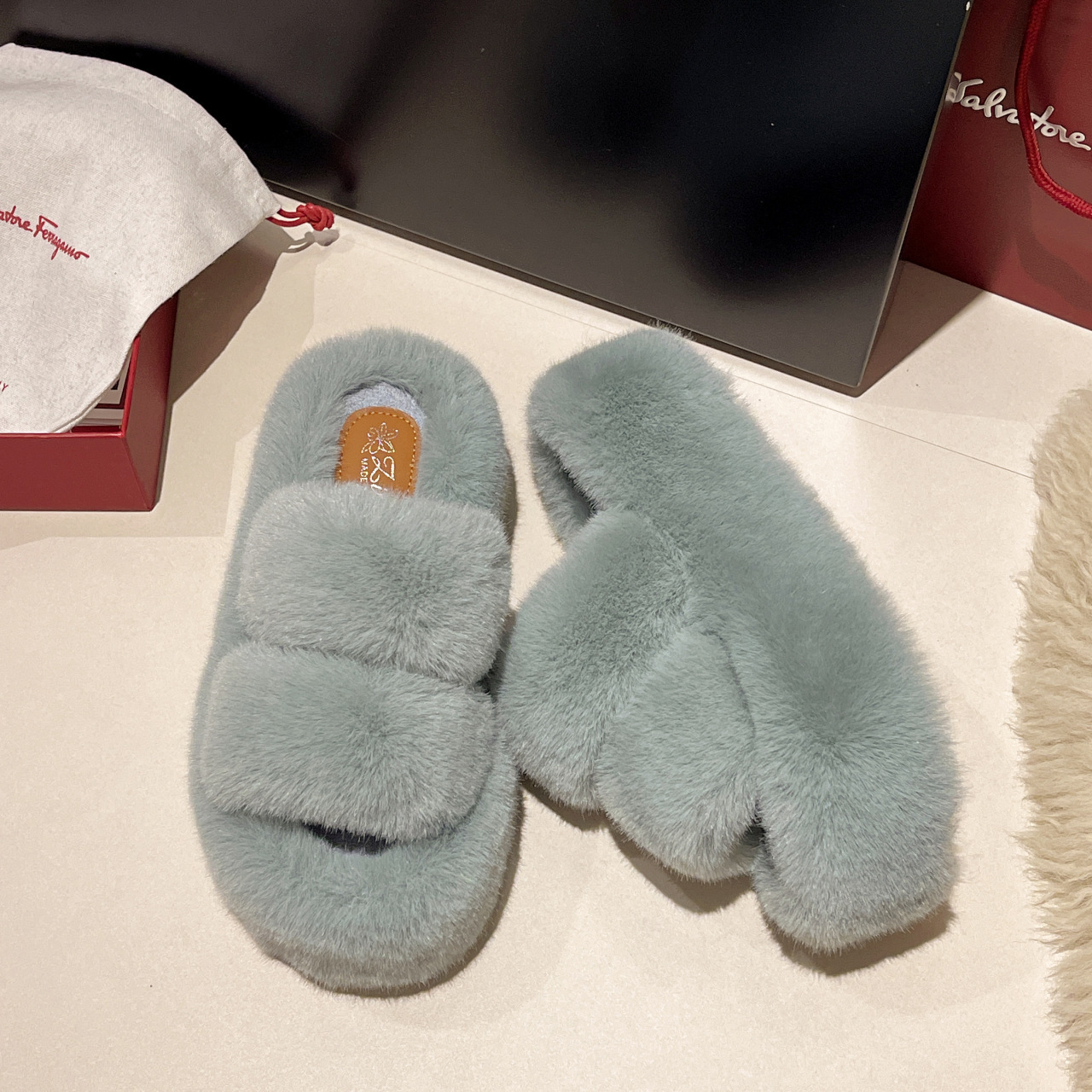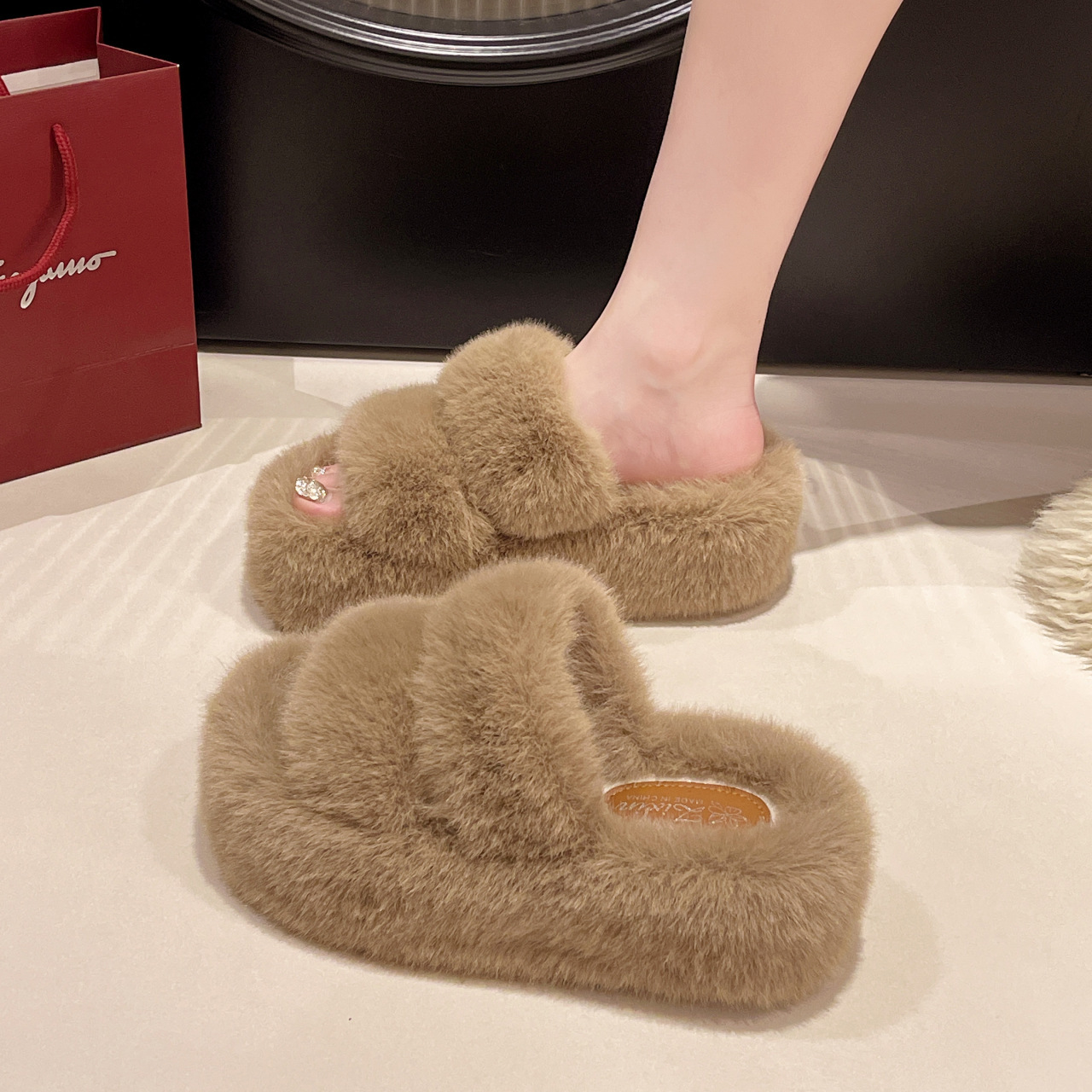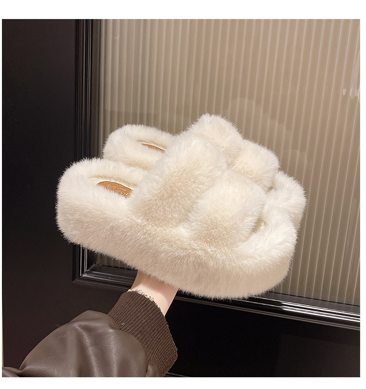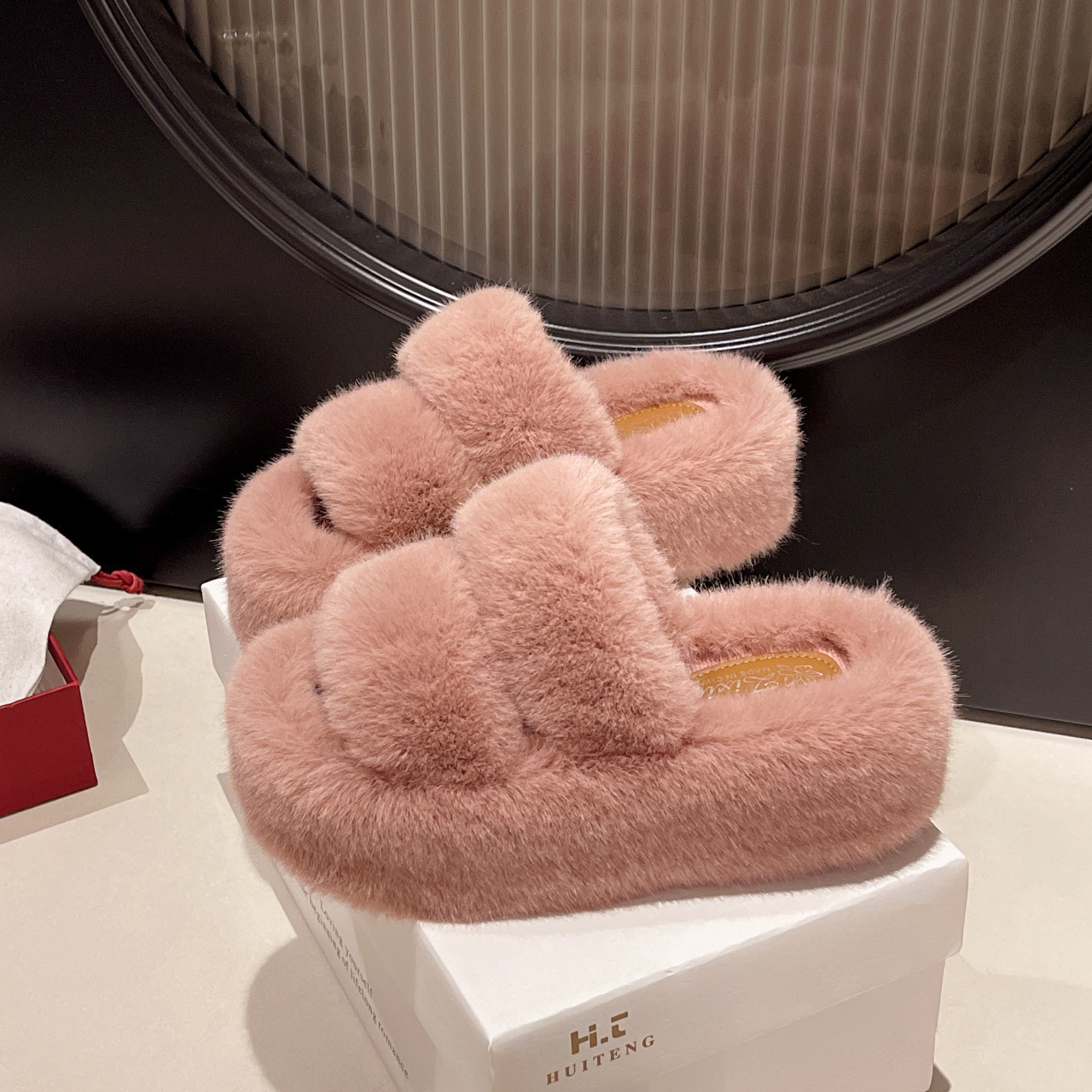 34~42 사이즈 여름 아우터용 여성용 인터넷 연예인 흰색 두꺼운 밑창 모피 슬리퍼 2024 새로운 다용도 면 슬리퍼스토어 가기