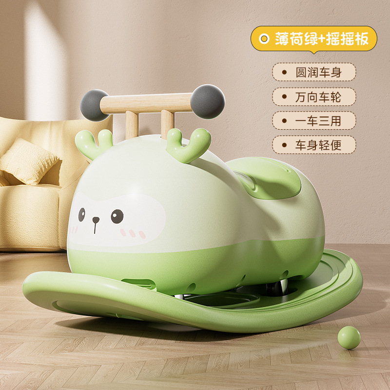 • 민트 그린 흔들 목마와 스쿠터 2-in-1.
