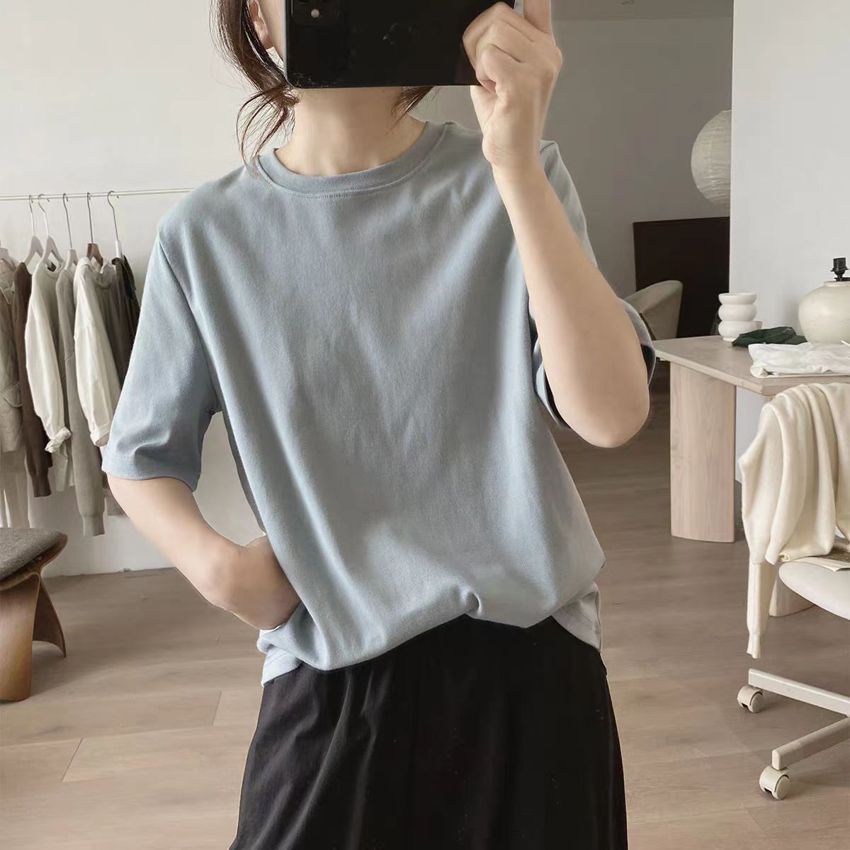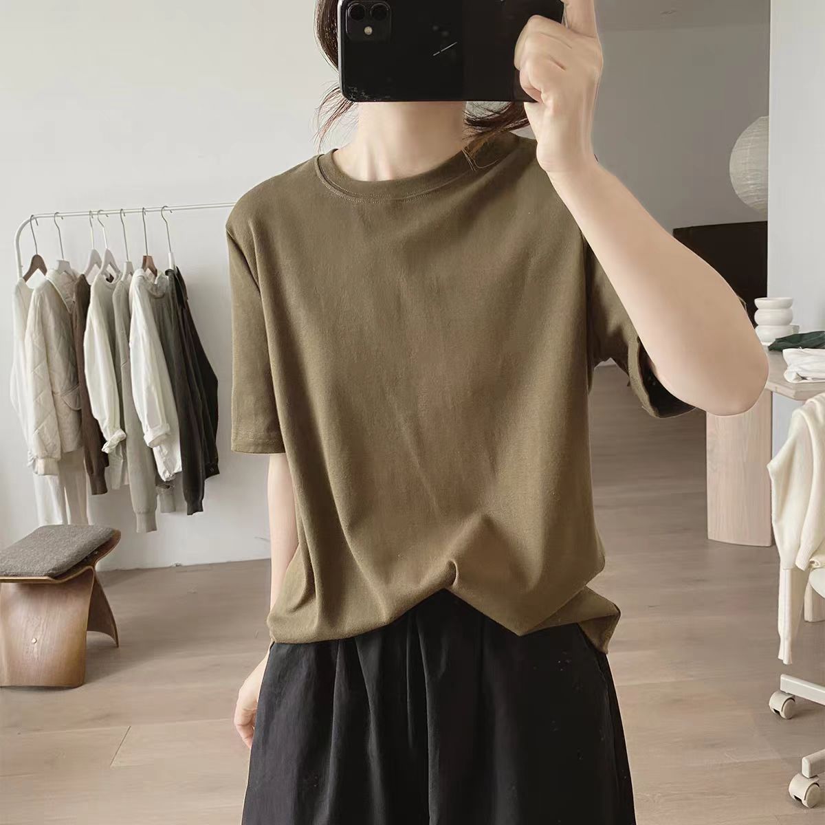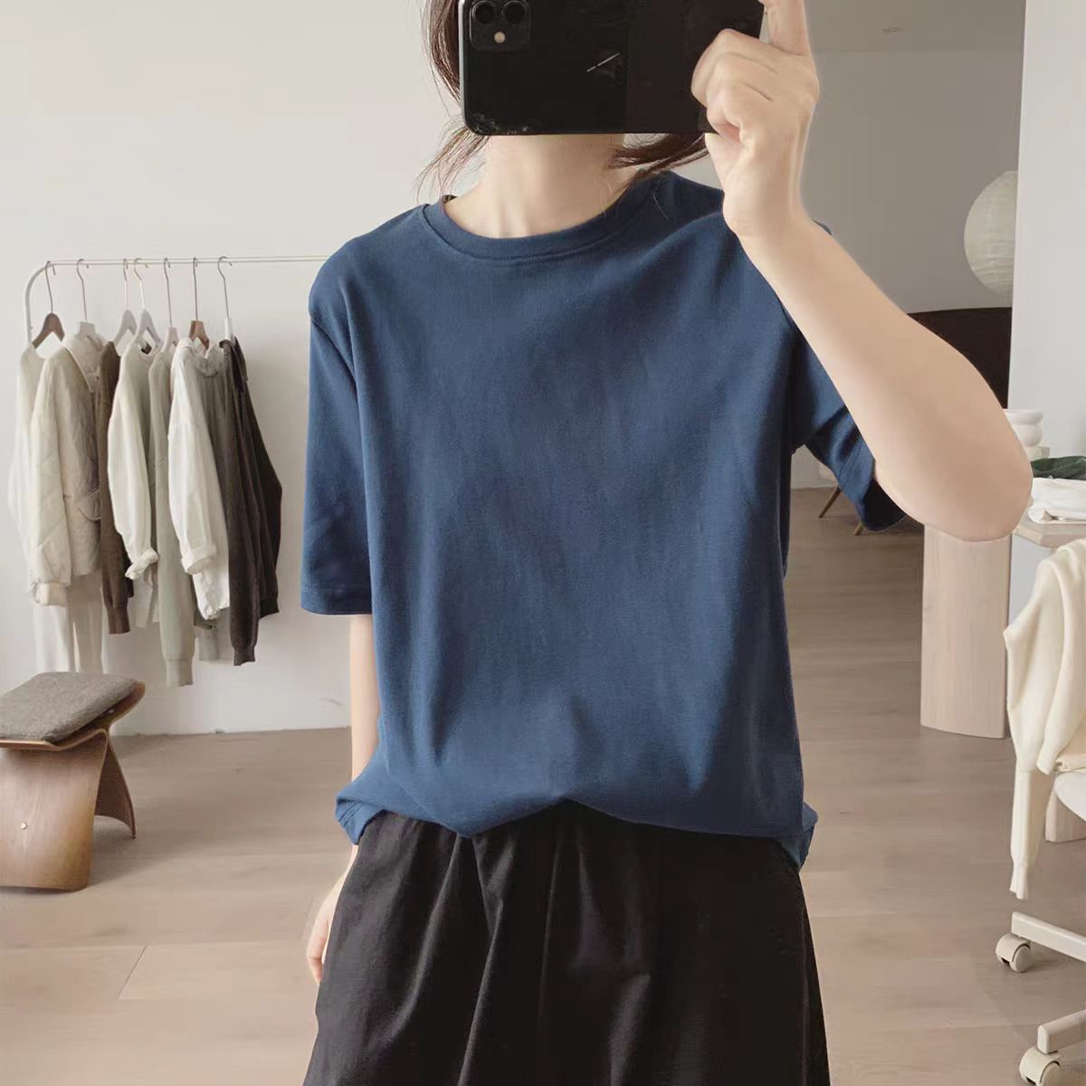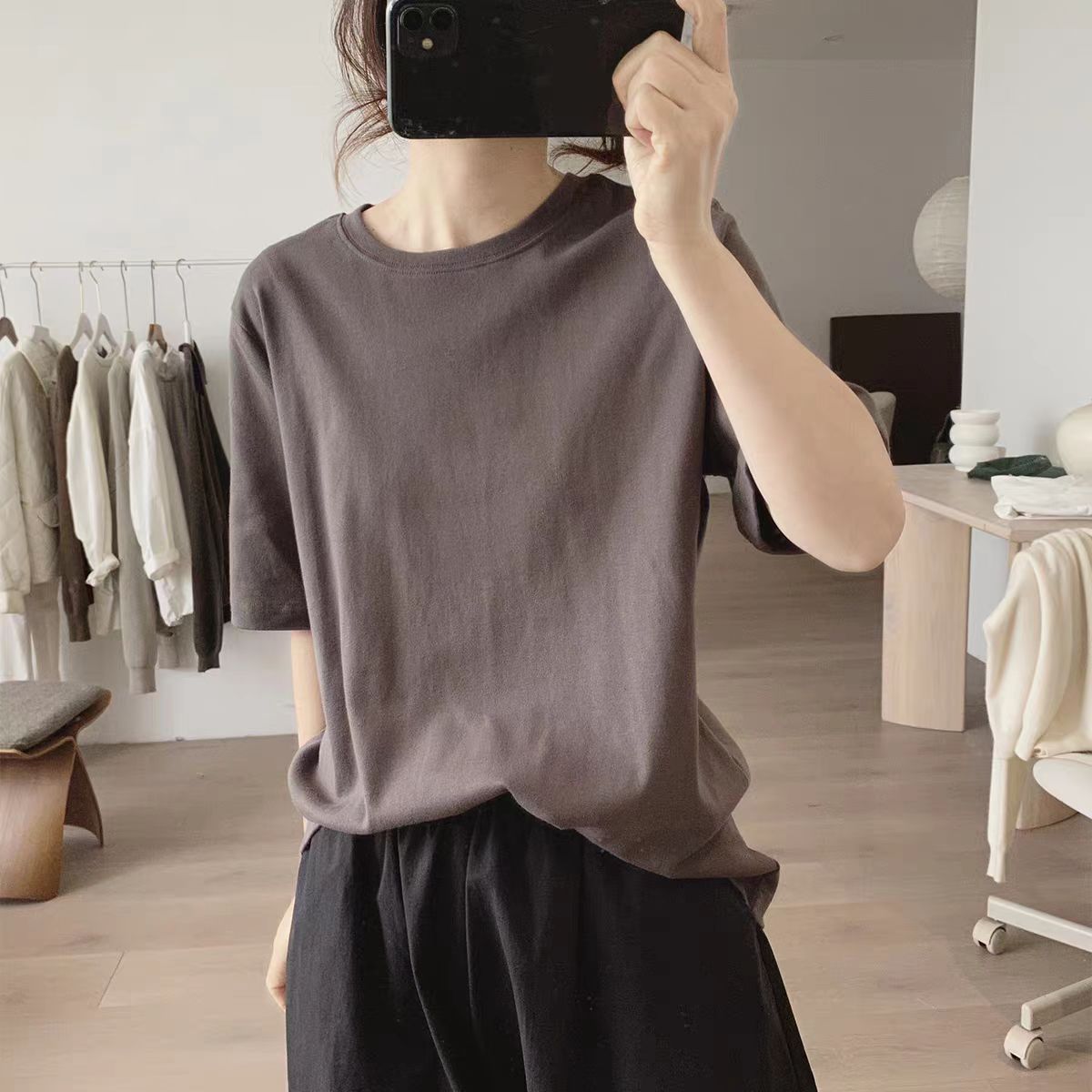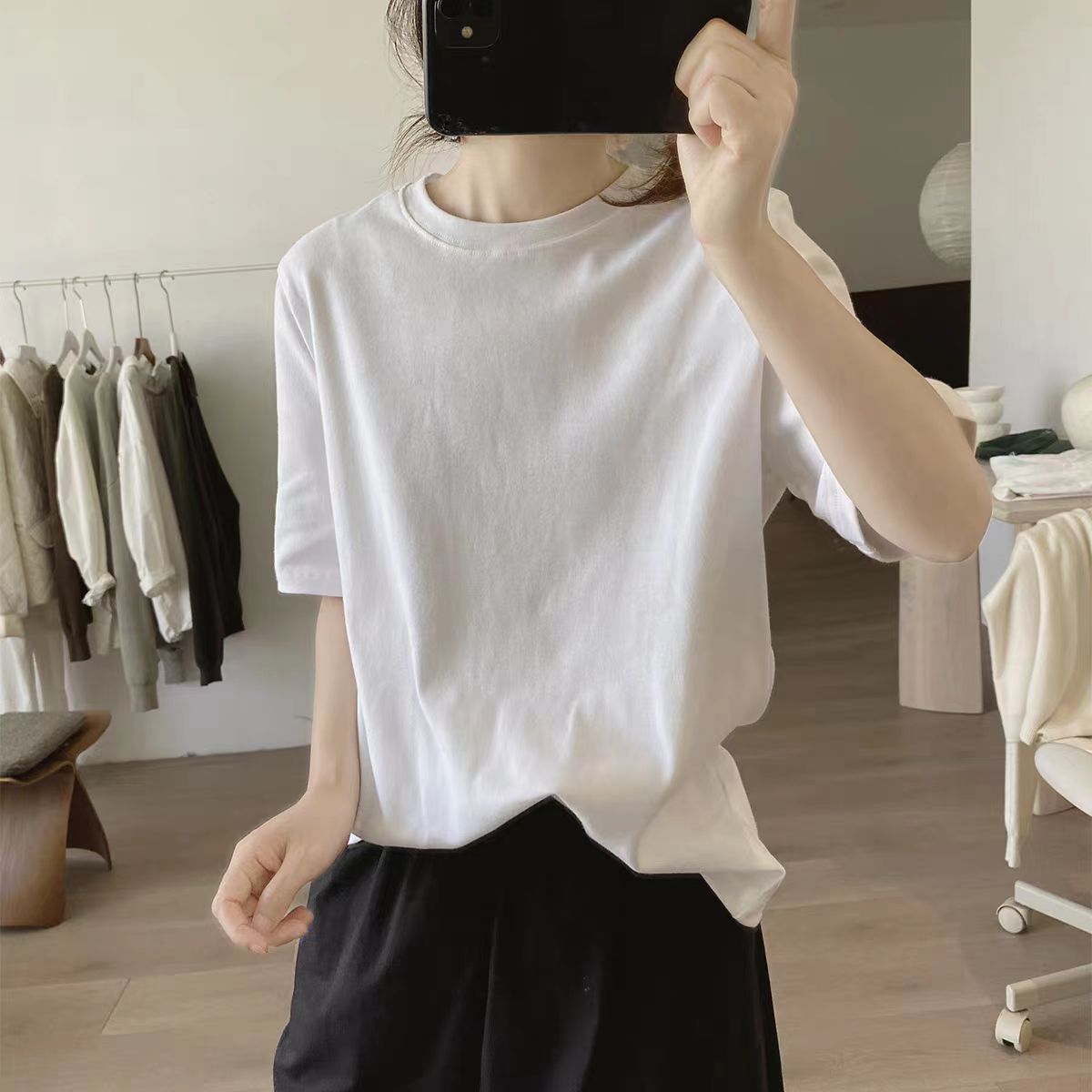 코튼 티셔츠 여자 여름 새 느슨한 슬리밍 한국 반팔 간단한 기본 탑 둥근 목베이스 셔츠스토어 가기