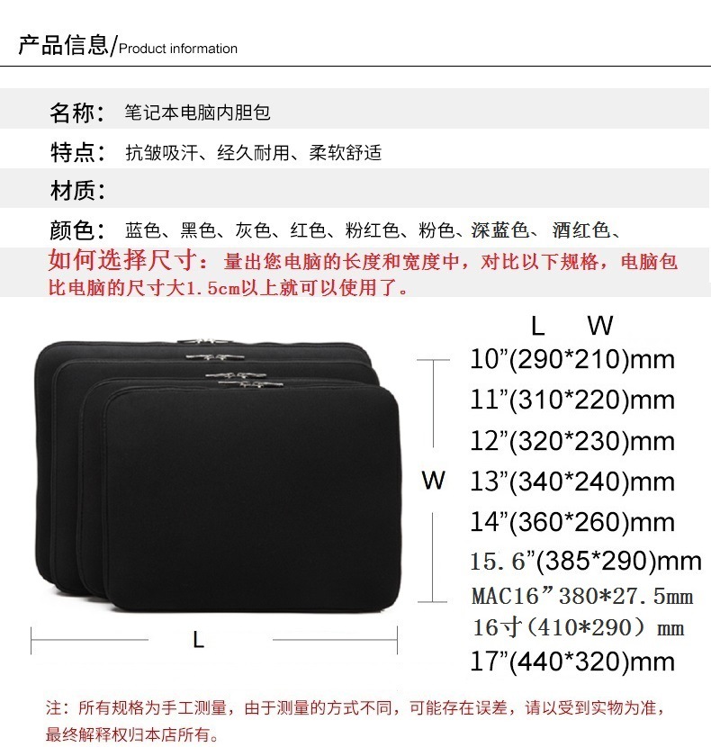 Apple 노트북 Huawei 13 태블릿 라이너 가방에 적합한 네오프렌 더블 지퍼 다이빙 소재 보호 커버스토어 가기