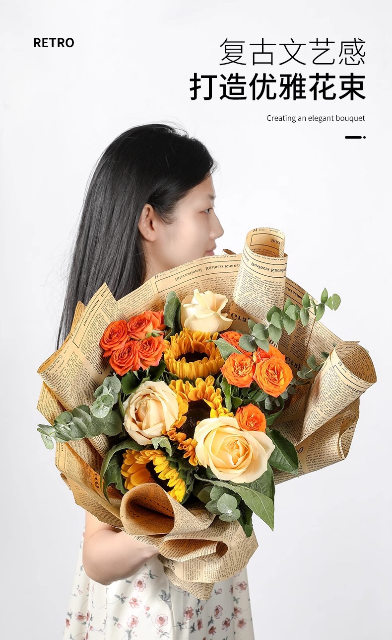 영어 신문 대형 복고풍 크래프트 종이 선물 꽃 포장지 꽃다발 포장지 꽃집 꽃집 재료스토어 가기