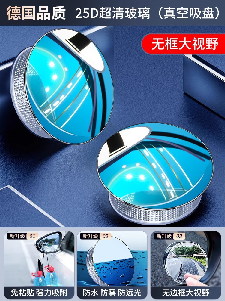 자동차 백미러 작은 둥근 거울 사각 영역 반전 슈퍼 클리어 보조 반사 거울 360 도 파노라마 광각 흡입 컵스토어 가기