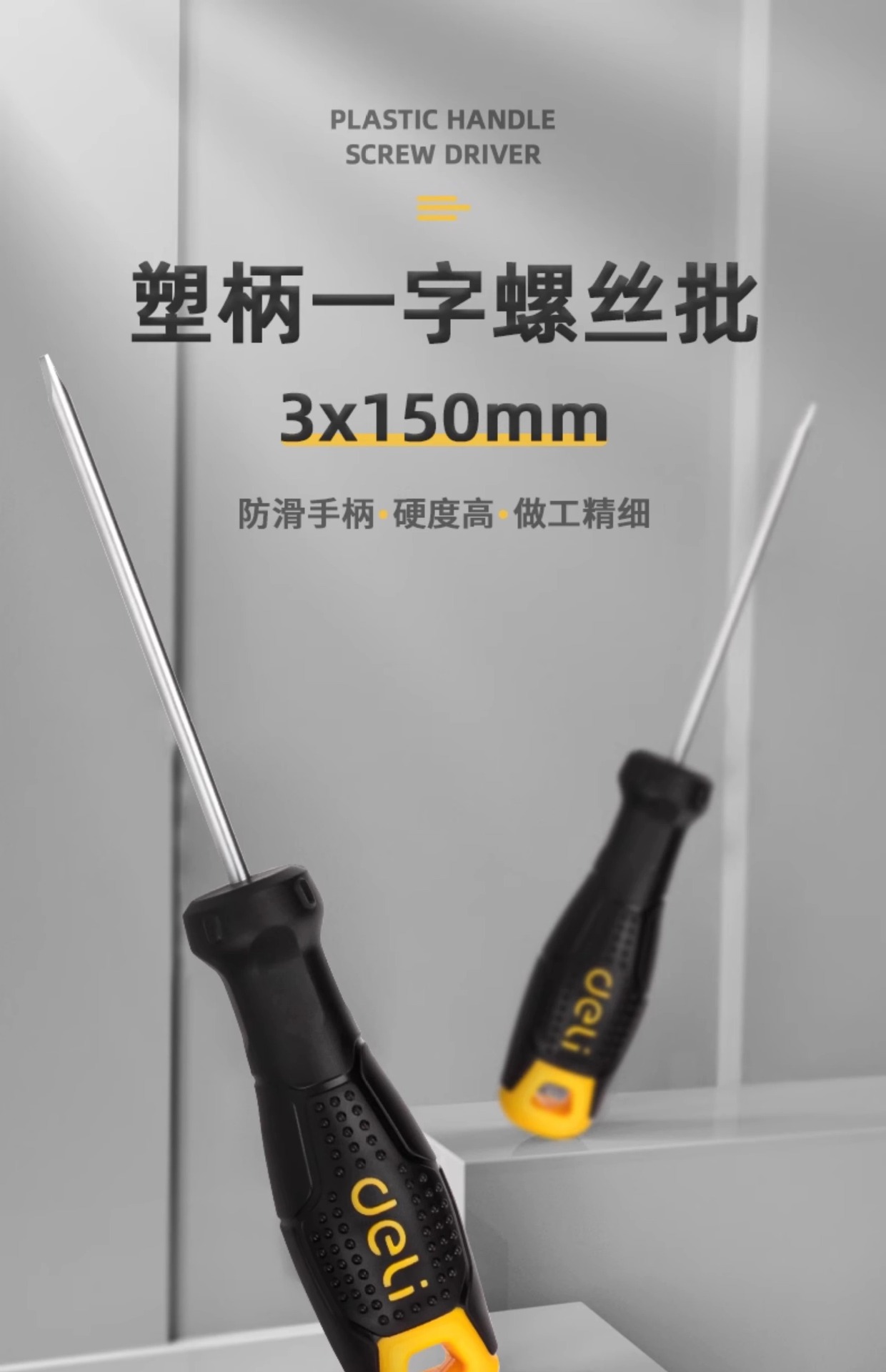 델리툴 DL6231501 일자 드라이버 3x150mm 플라스틱 손잡이 드라이버 일자 드라이버 가정용스토어 가기