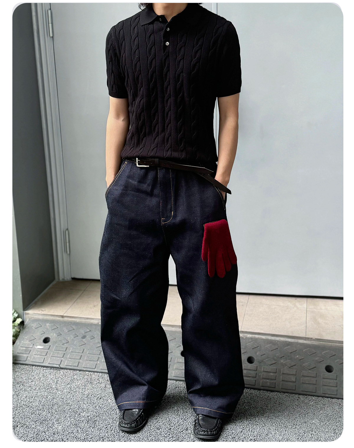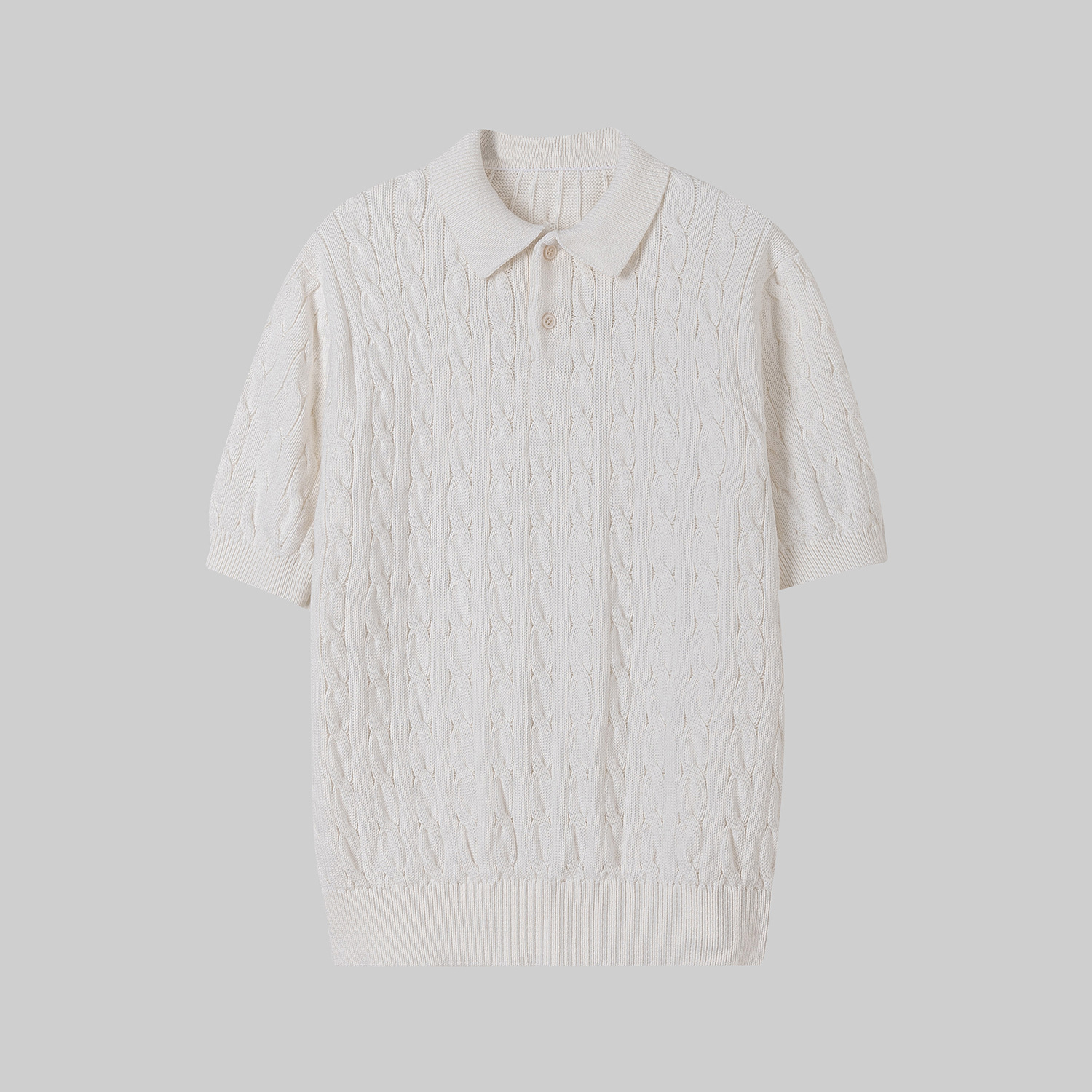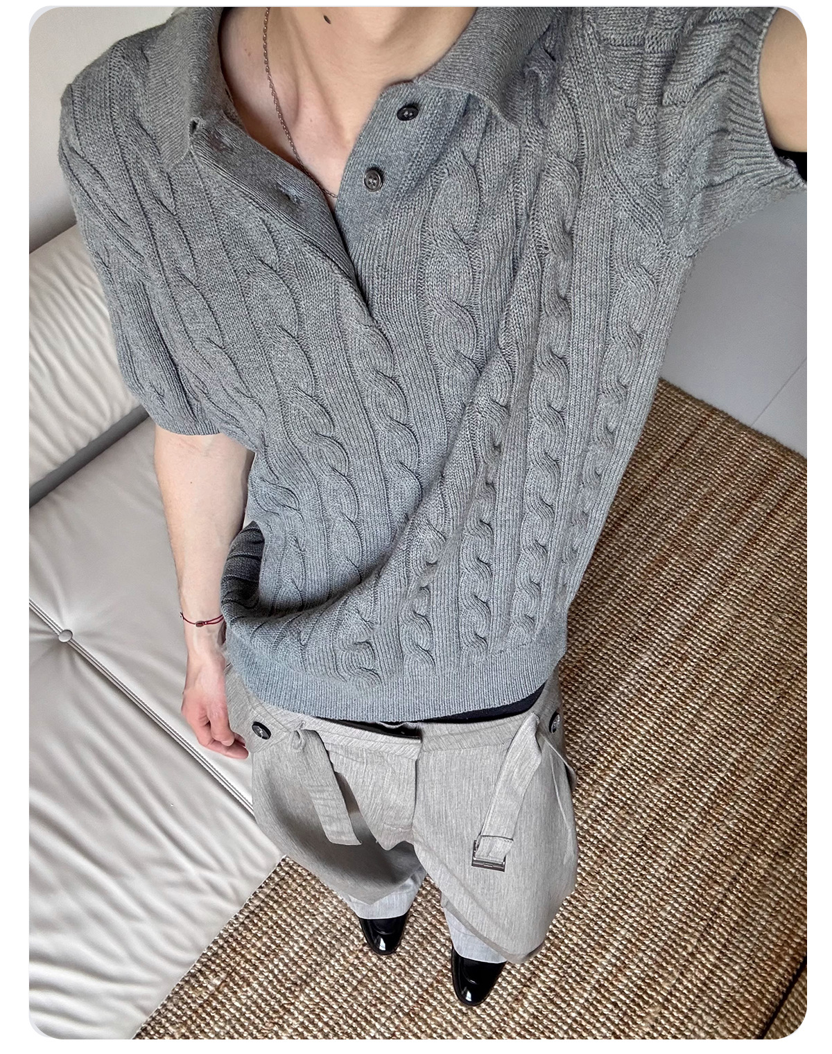 【CSMY】Xanvas 트위스트 폴로 콤비네이션 롱 스테이플 코튼 핏 오른쪽 어깨 반팔 니트 티셔츠 3가지 색상