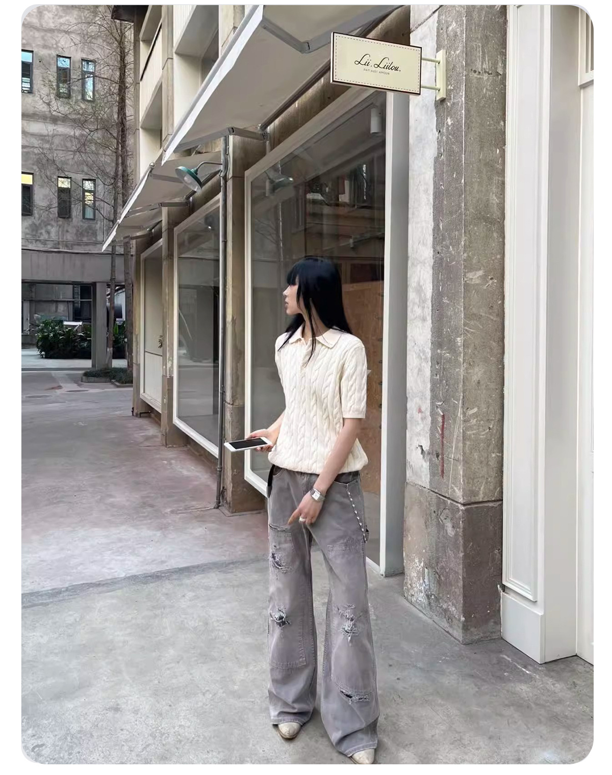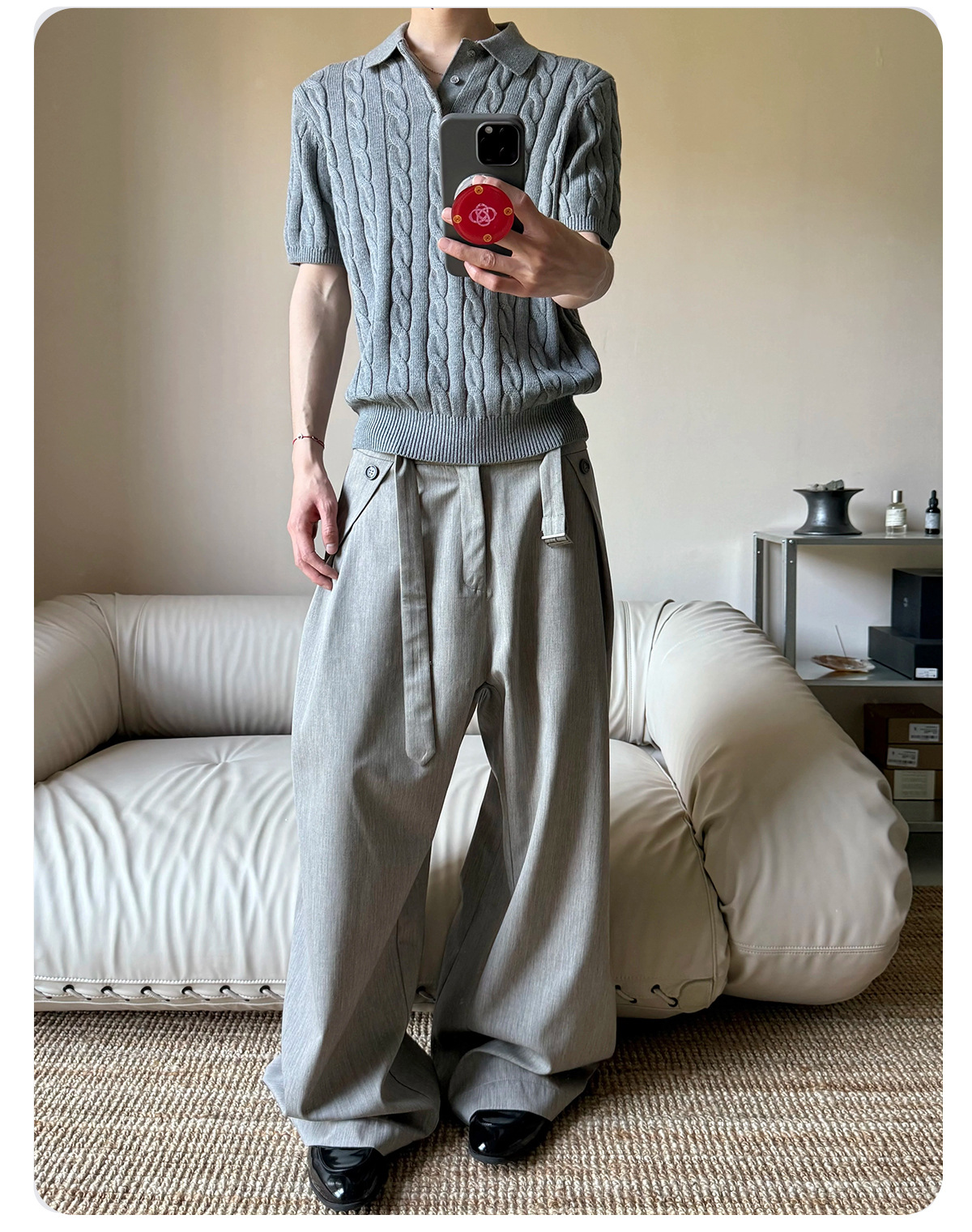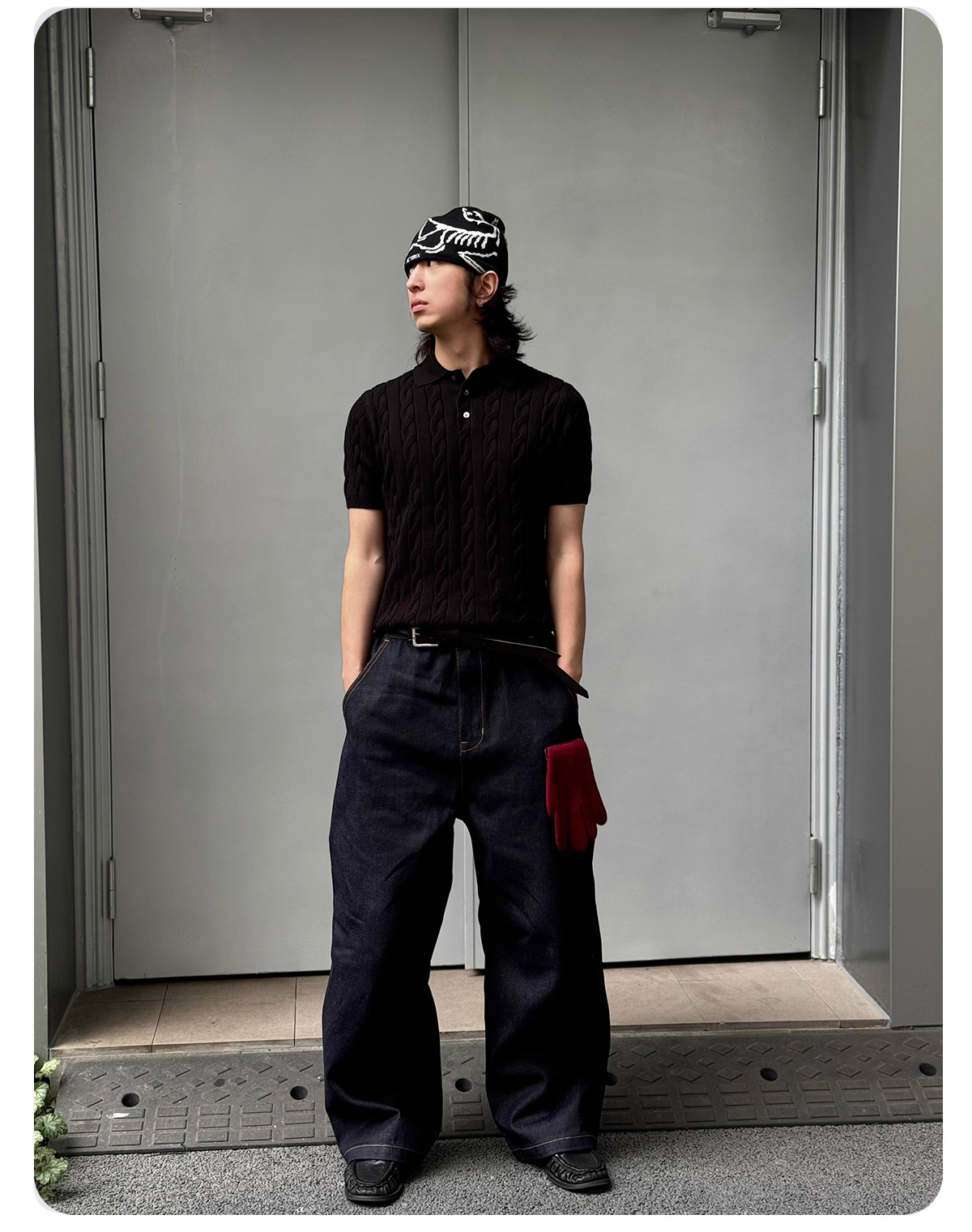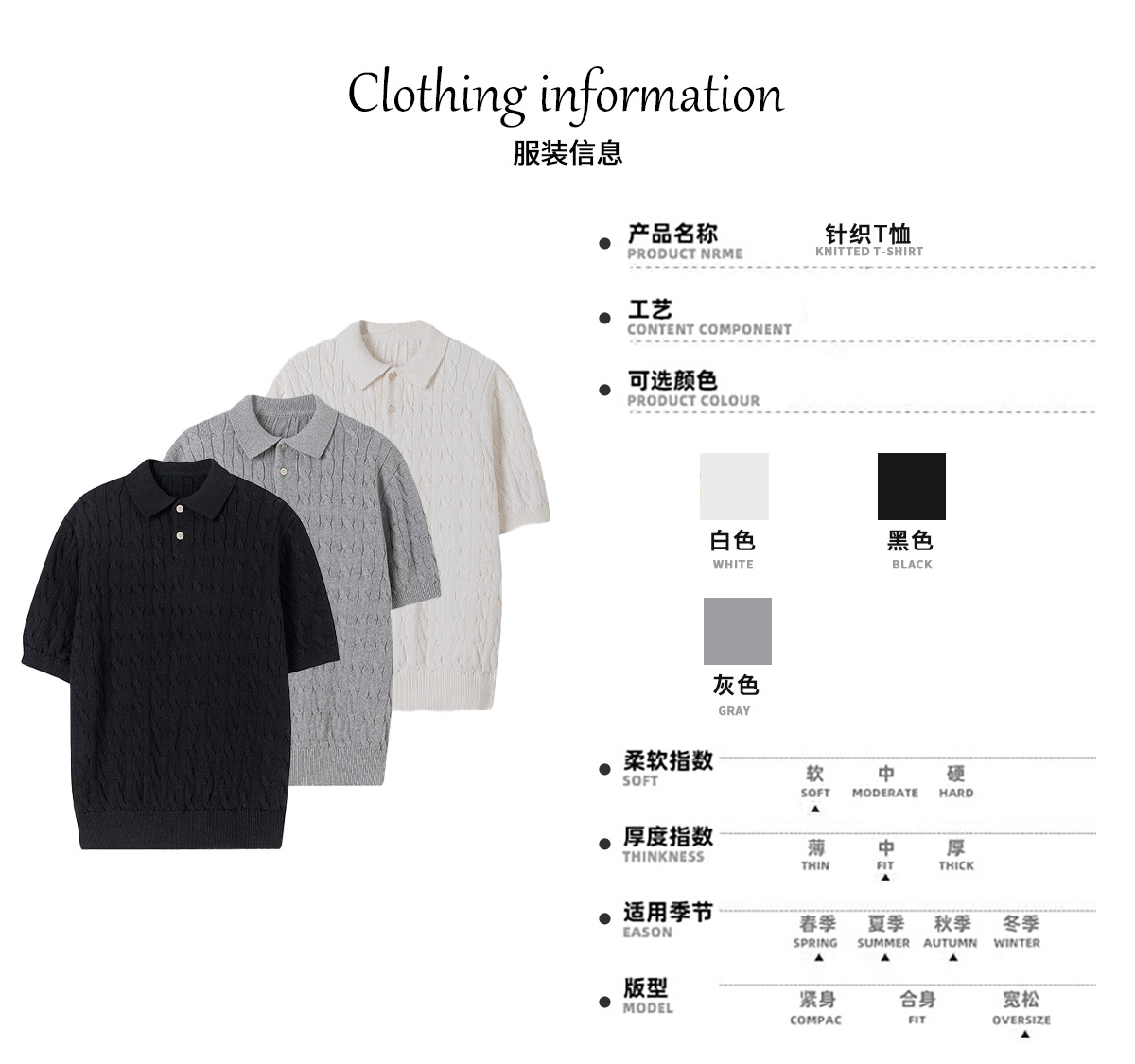 【CSMY】Xanvas 트위스트 폴로 콤비네이션 롱 스테이플 코튼 핏 오른쪽 어깨 반팔 니트 티셔츠 3가지 색상