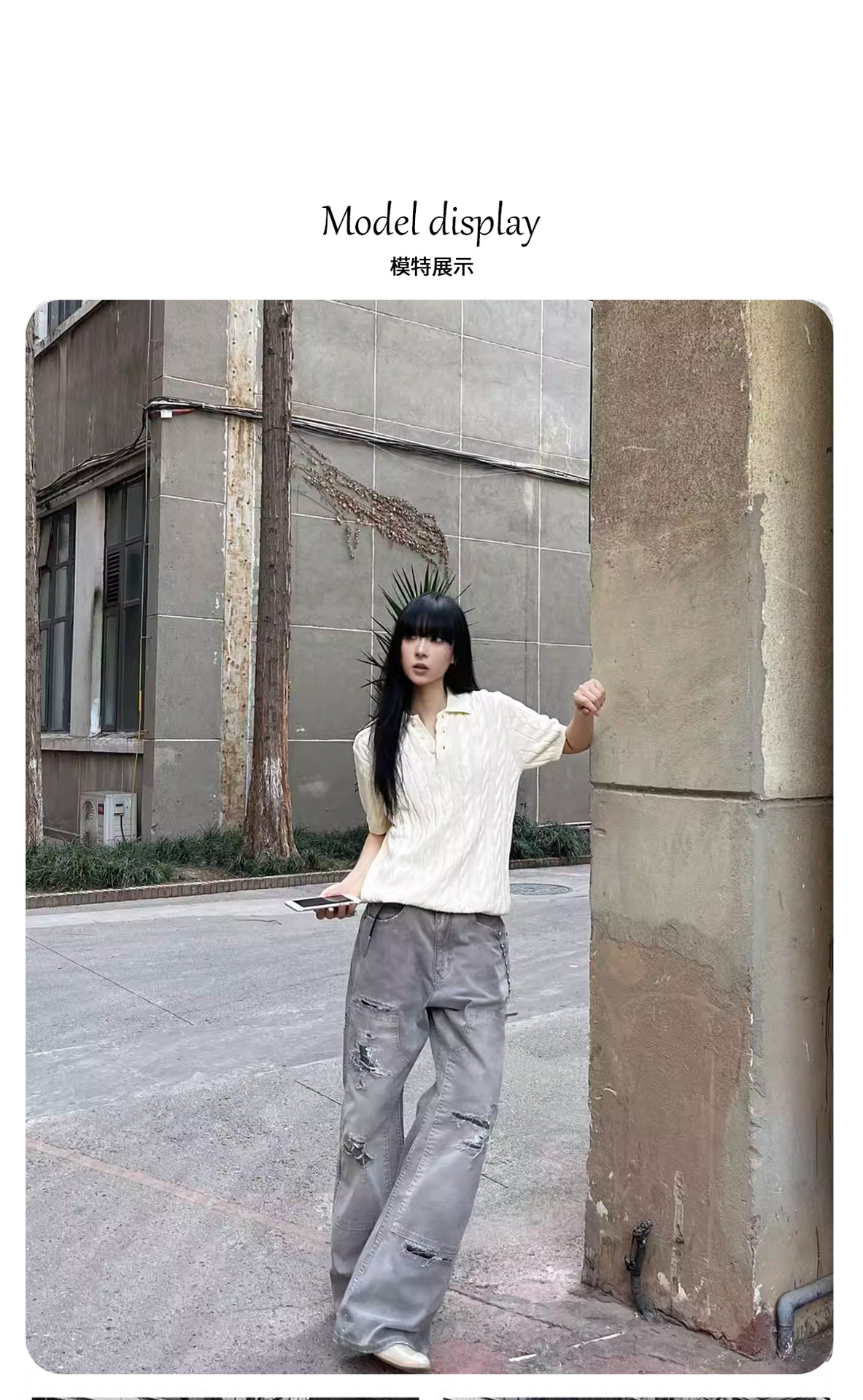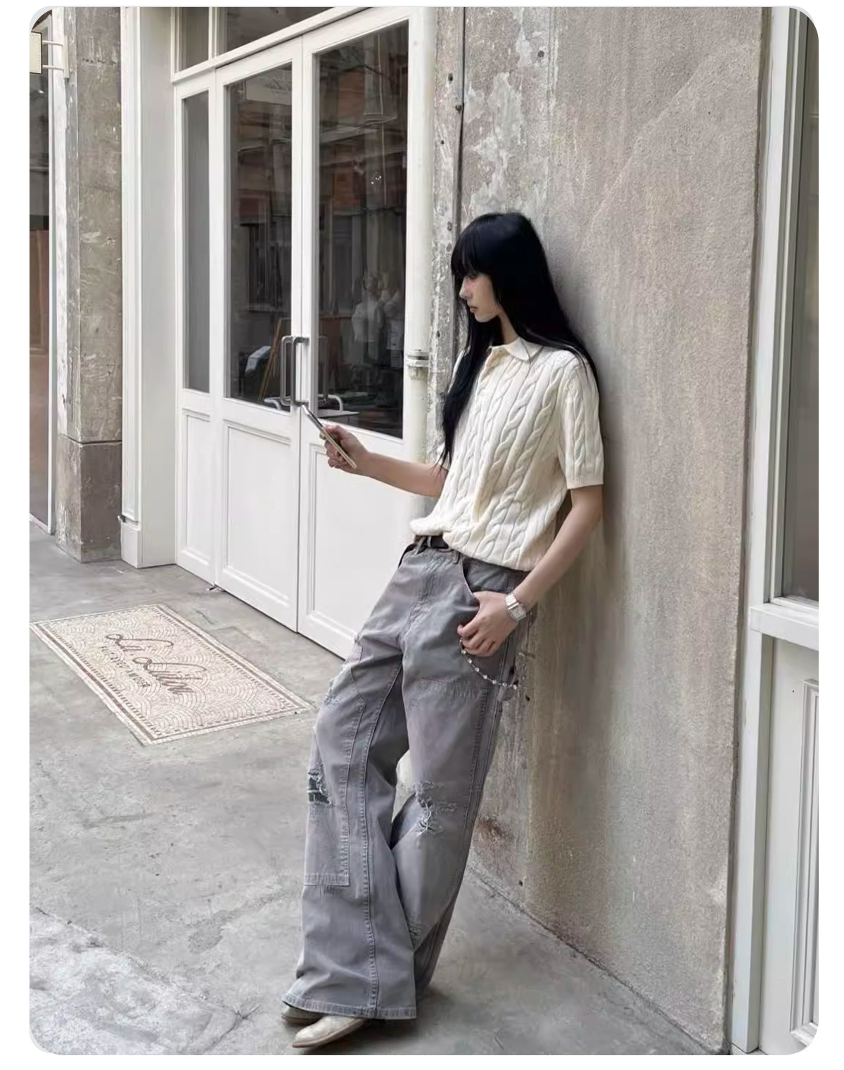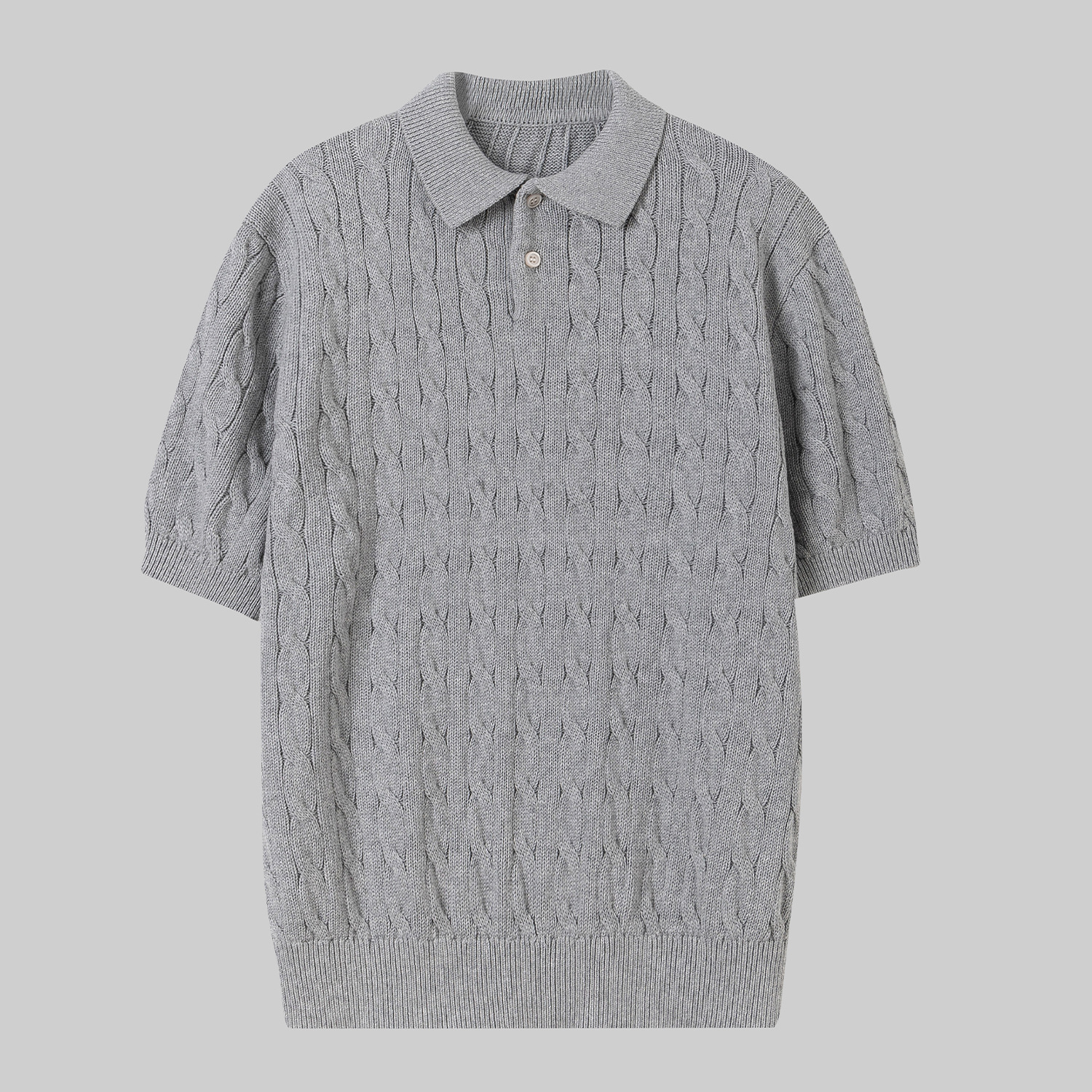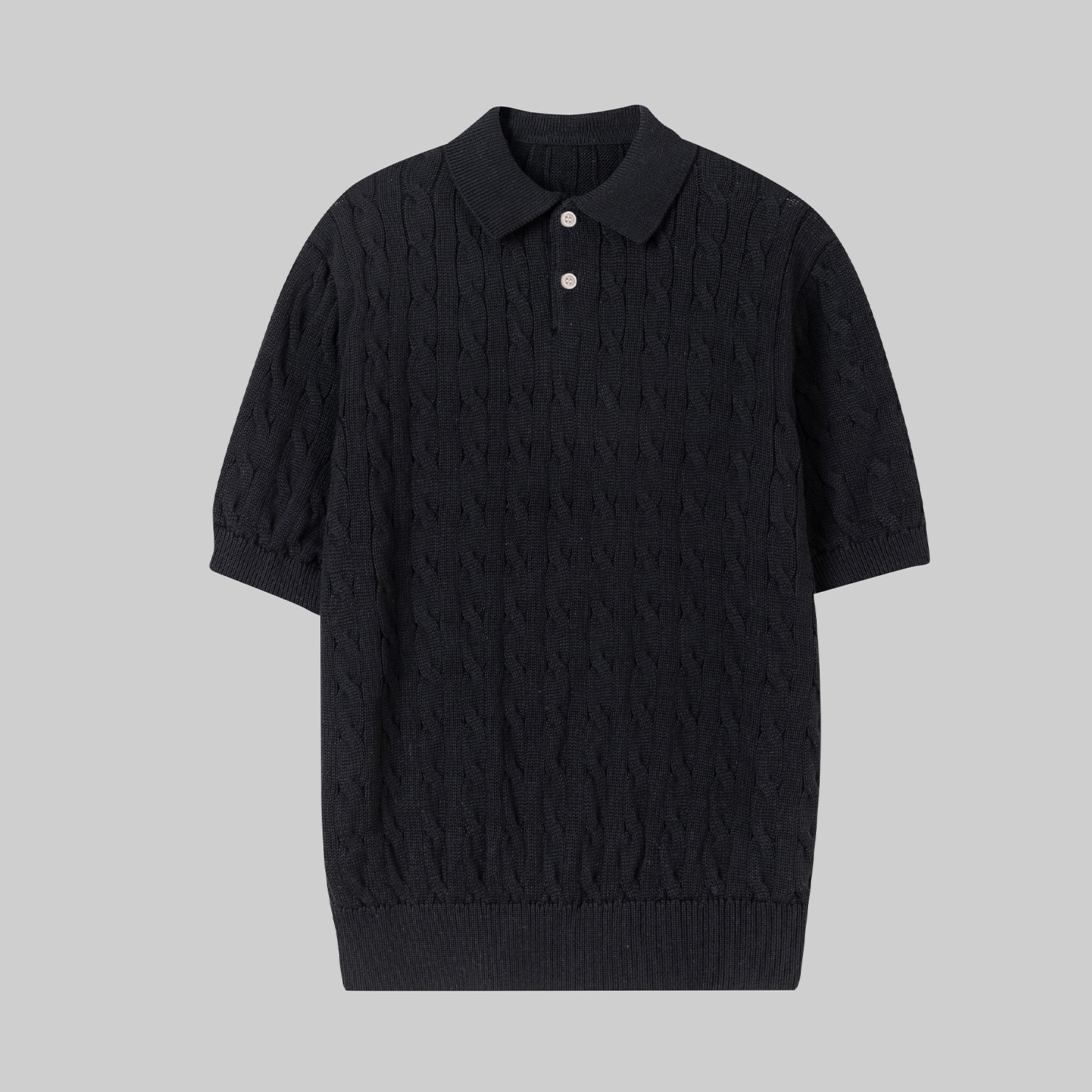 【CSMY】Xanvas 트위스트 폴로 콤비네이션 롱 스테이플 코튼 핏 오른쪽 어깨 반팔 니트 티셔츠 3가지 색상스토어 가기