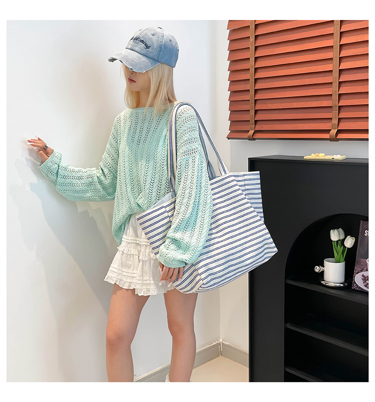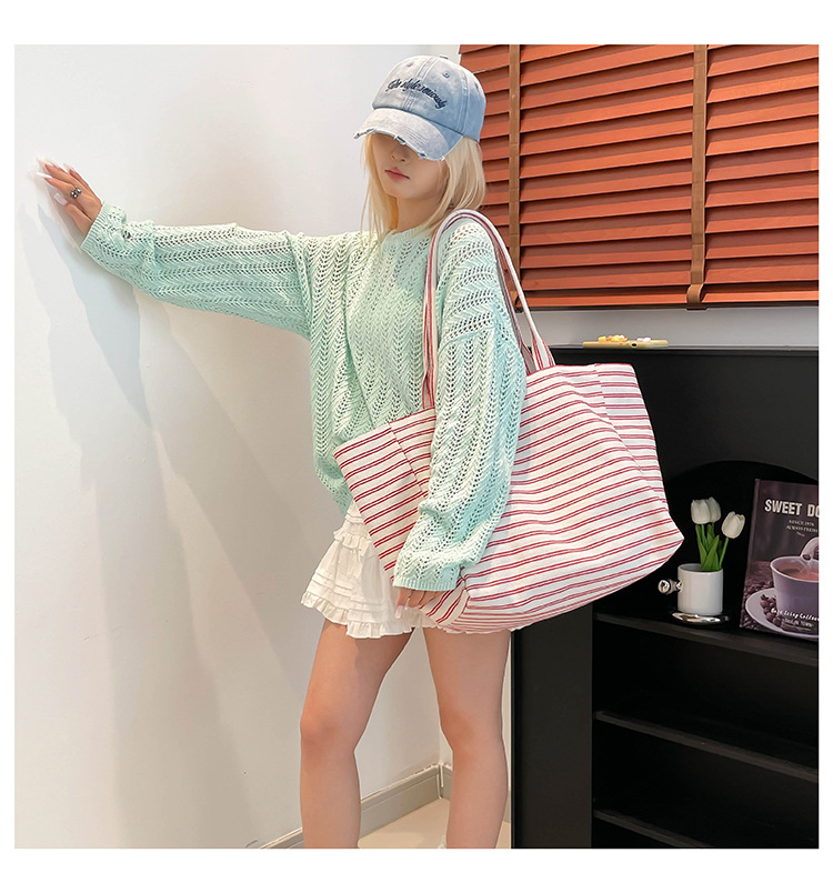 유행 빈티지 격자 무늬 어깨 가방 한국 스타일 대용량 토트 백 캐주얼 여름 통근 가방 게으른 캔버스 가방