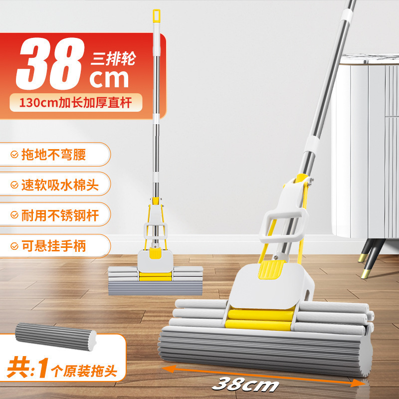 • 재고 있음 *10팩 - 38CM 직선 3열 휠 걸레 [총 1개의 오리지널 코튼 헤드]