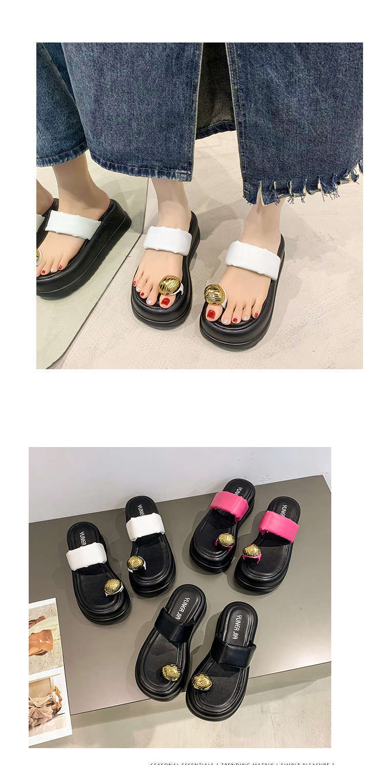 여성을위한 틈새 금속 버클 슬리퍼 2025 한국어 버전 새로운 캐주얼 플립 플롭 비치 샌들스토어 가기