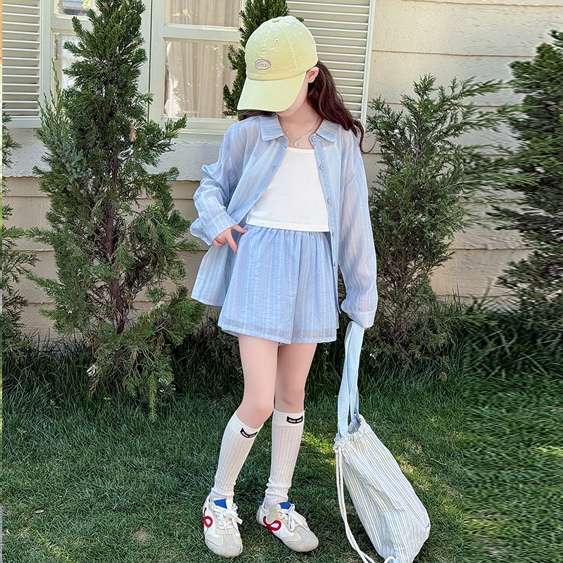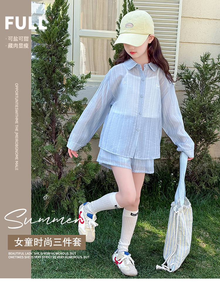 소녀 여름 선스크린 세트 2025 새로운 패션 캐주얼 어린이 선 스크린 의류 여름 세 조각 유행 세트