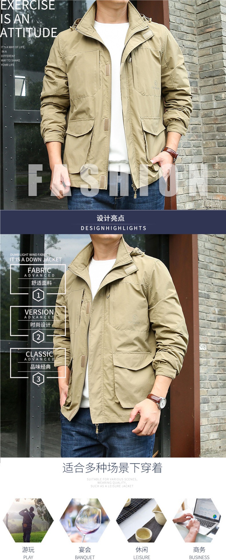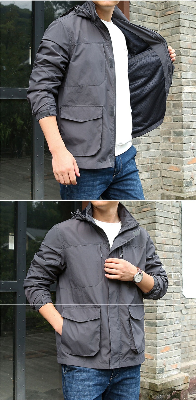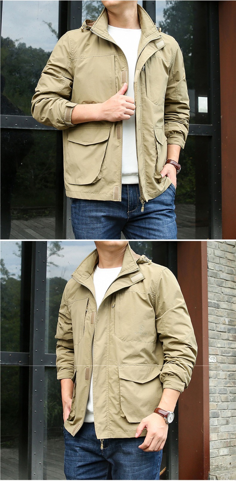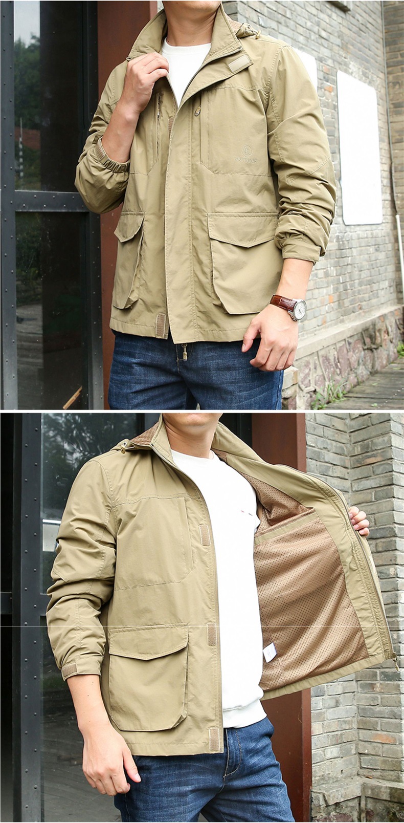 2024 새로운 멀티 포켓 재킷 봄, 가을 얇은 재킷 남성 캐주얼 재킷 남성용 야외 트렌디 탑