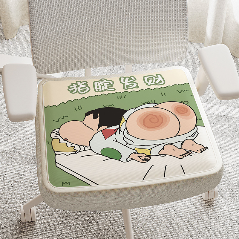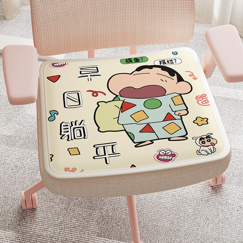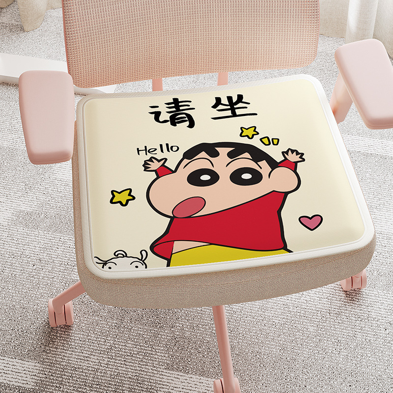 크레용 신짱 만화 통기성 의자 쿠션 여름 얼음 실크 시원한 느낌 쿠션 두꺼운 게임 의자 쿠션 탈부착 및 세척 가능한 엉덩이 쿠션