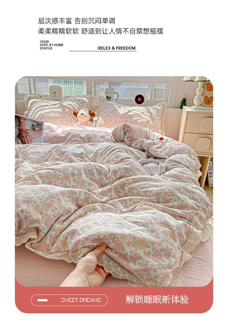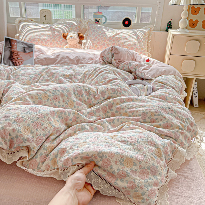 • 번화 [피부 친화적인 이중 거즈 프렌치 스타일 순면 레이스]