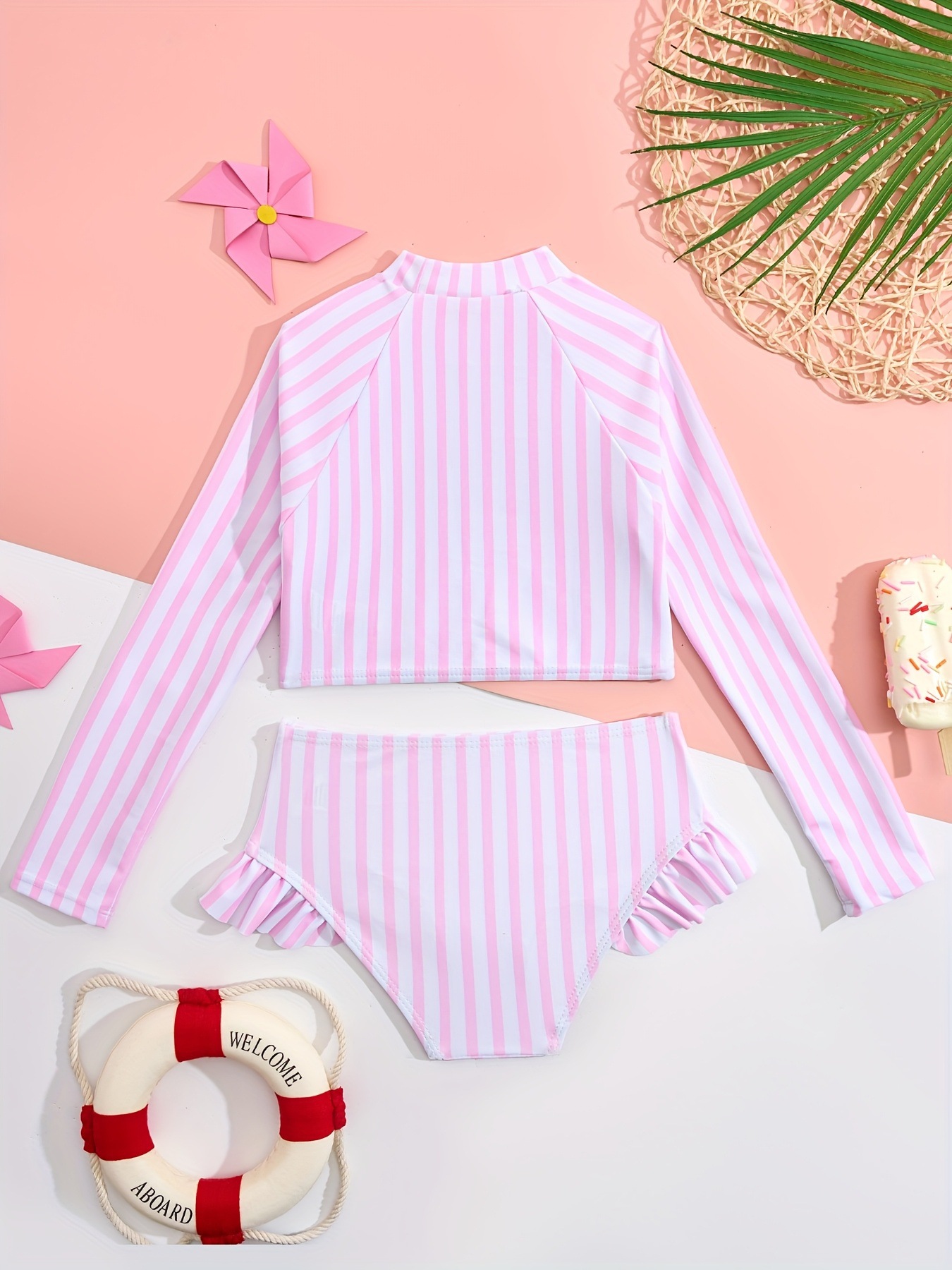 2025 새로운 어린이 수영복 소녀 한국어 버전 패션 공주 Xiaobao 대비 색상 소녀 스플릿 수영복 제조 업체 도매