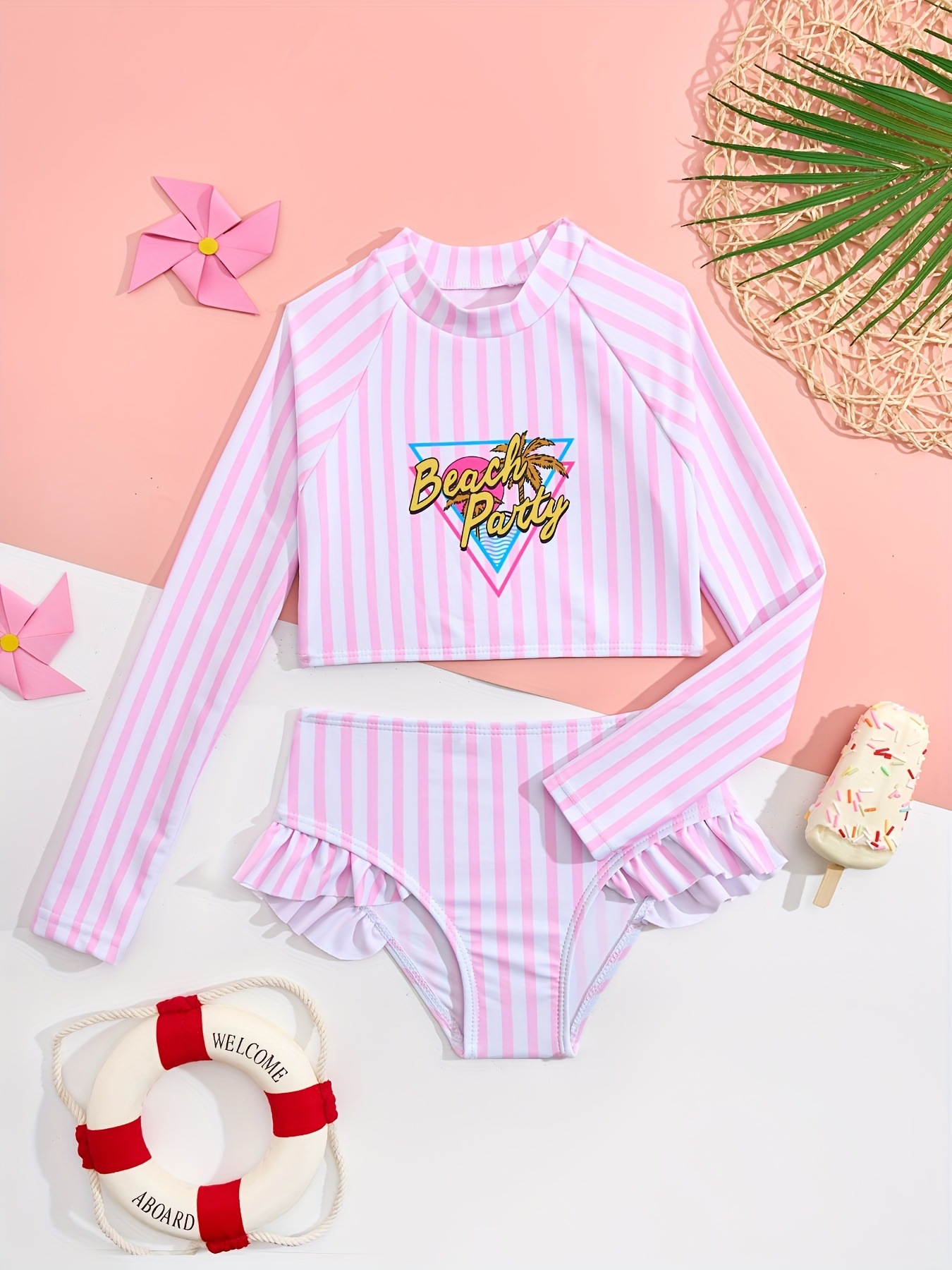 2025 새로운 어린이 수영복 소녀 한국어 버전 패션 공주 Xiaobao 대비 색상 소녀 스플릿 수영복 제조 업체 도매스토어 가기