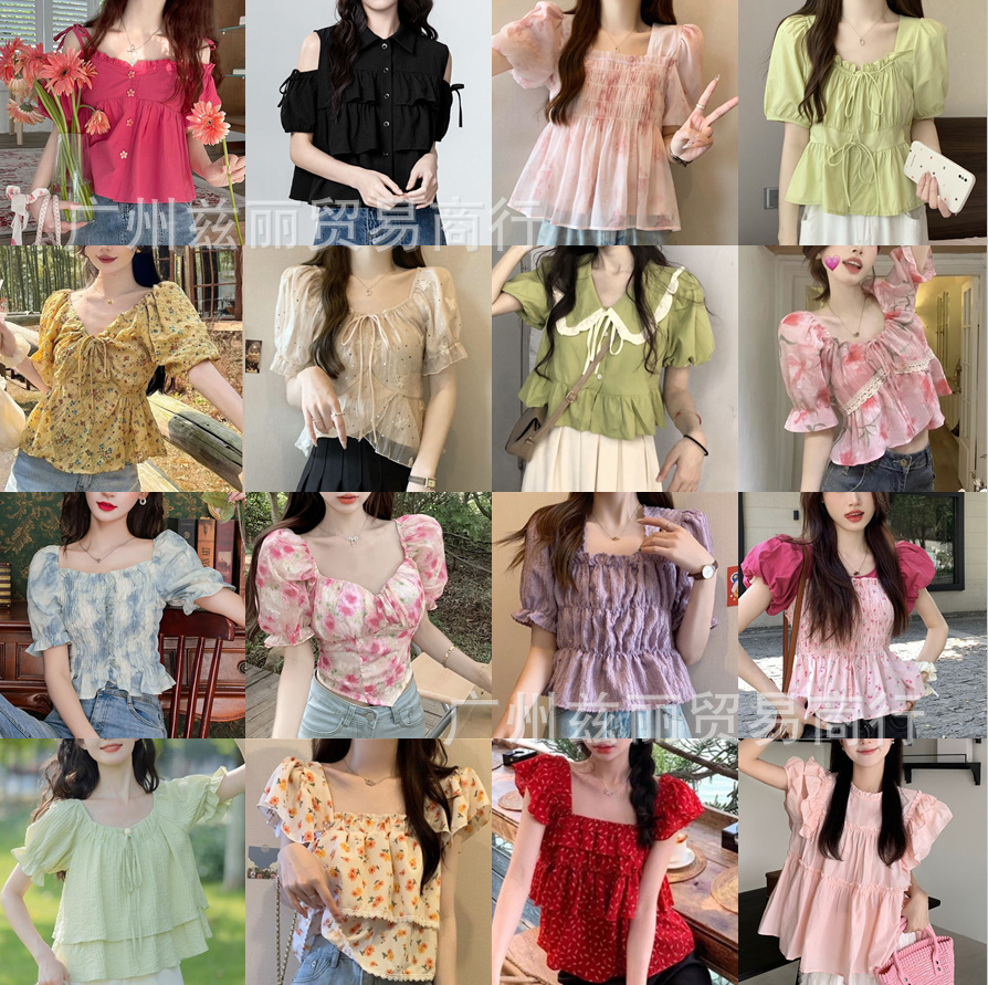 여름 여성 프렌치 반팔 쉬폰 셔츠, 여성 디자인 셔츠, 예쁜 소녀 상의, 라이브 방송 공장 도매스토어 가기