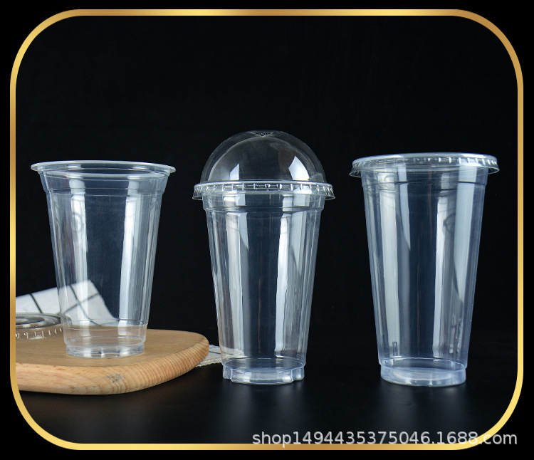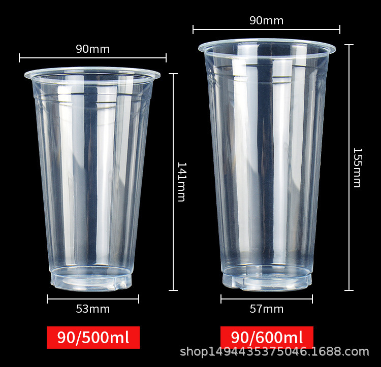 일회용 90 구경 우유 차 컵 뚜껑이 있는 투명 음료 주스 포장 플라스틱 컵 도매 무료 배송스토어 가기