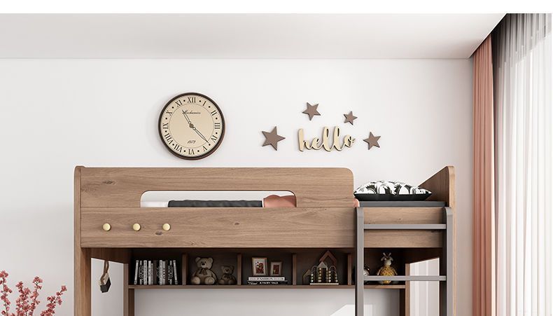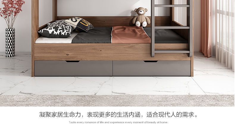 현대적인 미니멀리스트 하이 로우 베드 이층 침대 북유럽 로그 퀸 침대 동일한 폭 이층 1.02m 1.5 어린이 침대