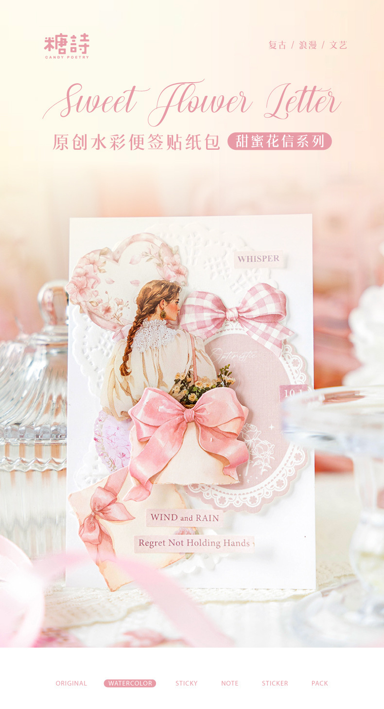 설탕 시 수채화 스티커 메모 팩 달콤한 꽃 편지 시리즈 나비 꽃 크리 에이 티브 소재 핸드북 장식 스티커