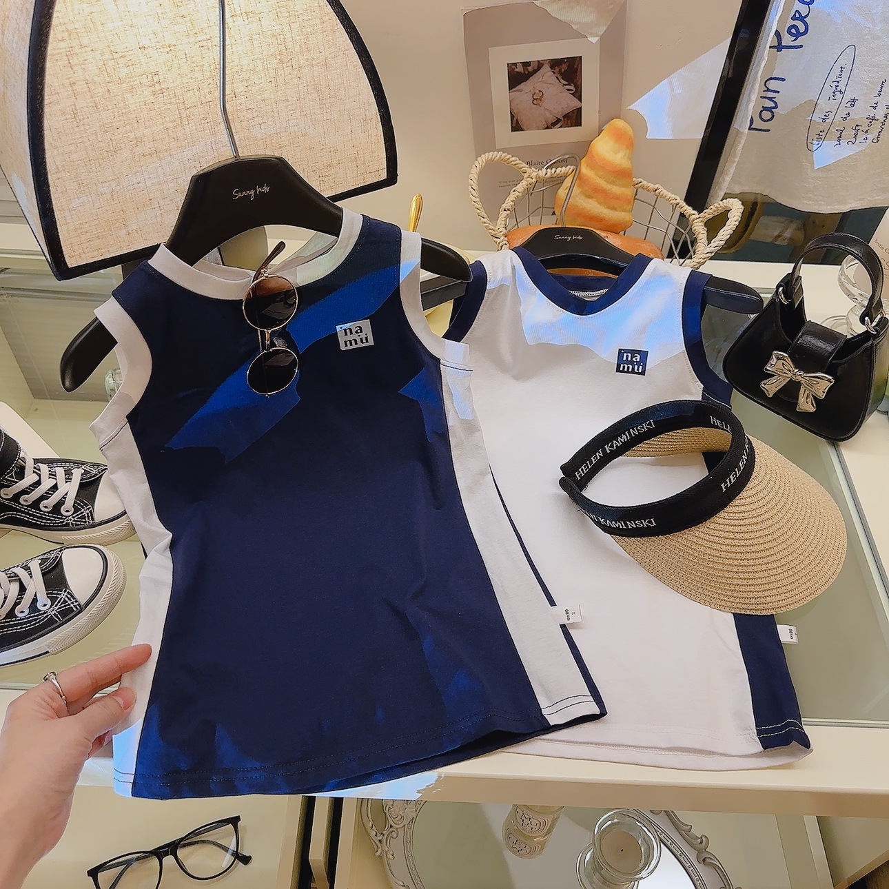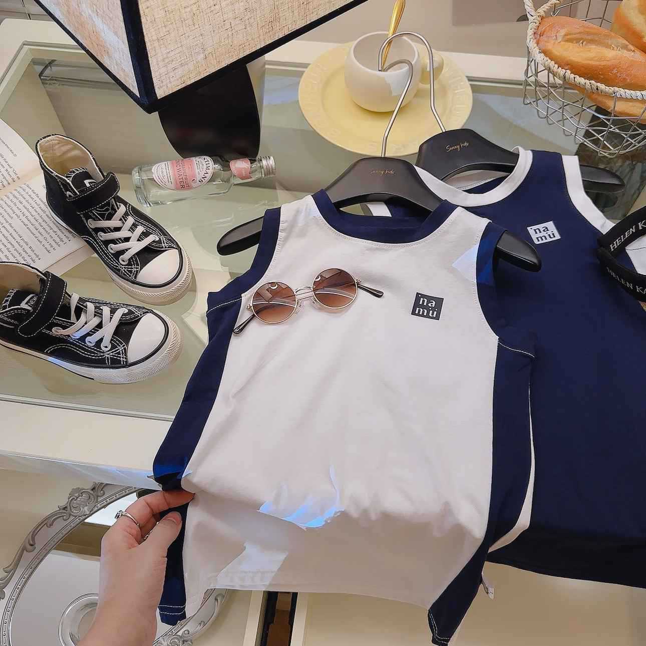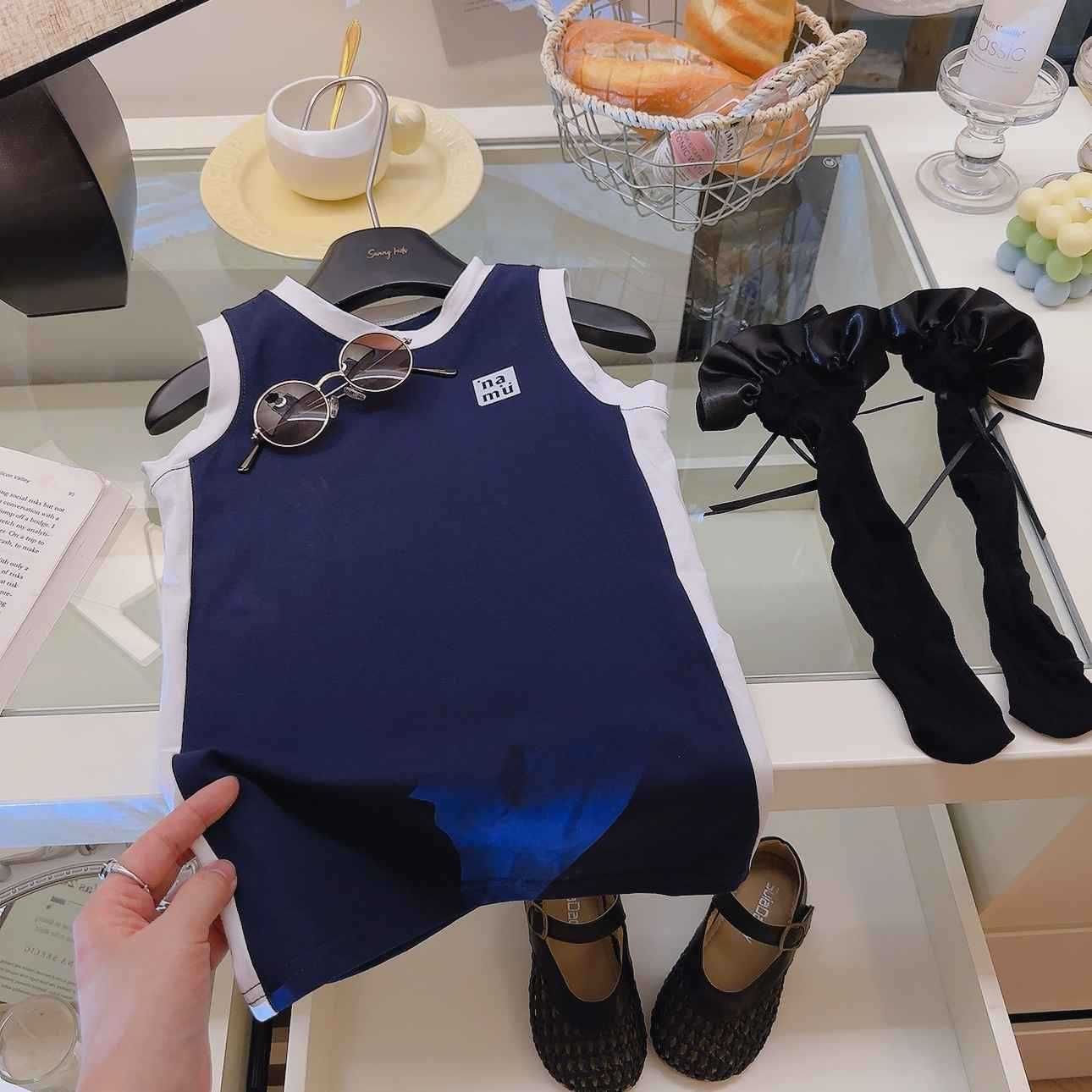 소녀 원피스 여름 새 스타일 퓨어 코튼 컬러 블록 Vise 스커트 중간 길이 아기 소녀의 스트레이트 스커트 소매 없는 티셔츠 스커트스토어 가기