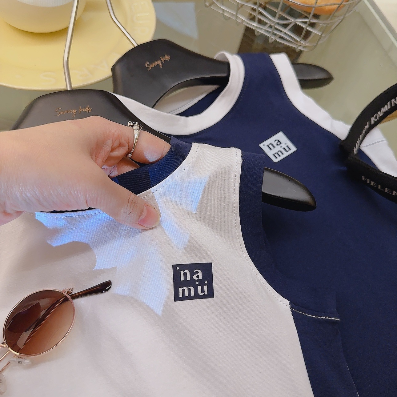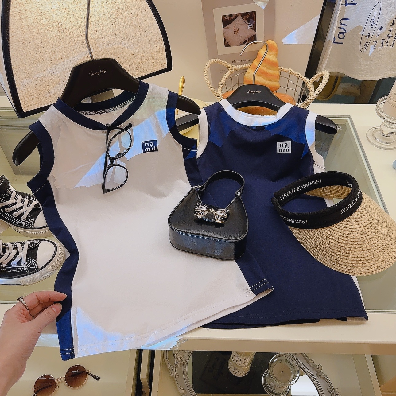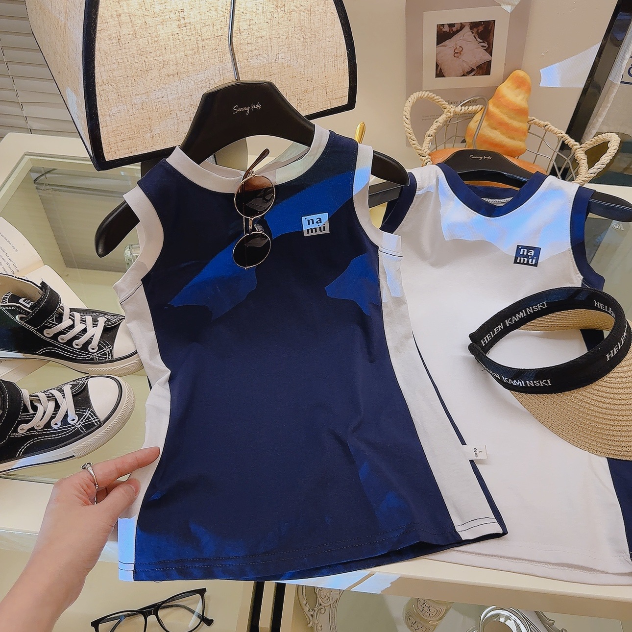 소녀 원피스 여름 새 스타일 퓨어 코튼 컬러 블록 Vise 스커트 중간 길이 아기 소녀의 스트레이트 스커트 소매 없는 티셔츠 스커트스토어 가기