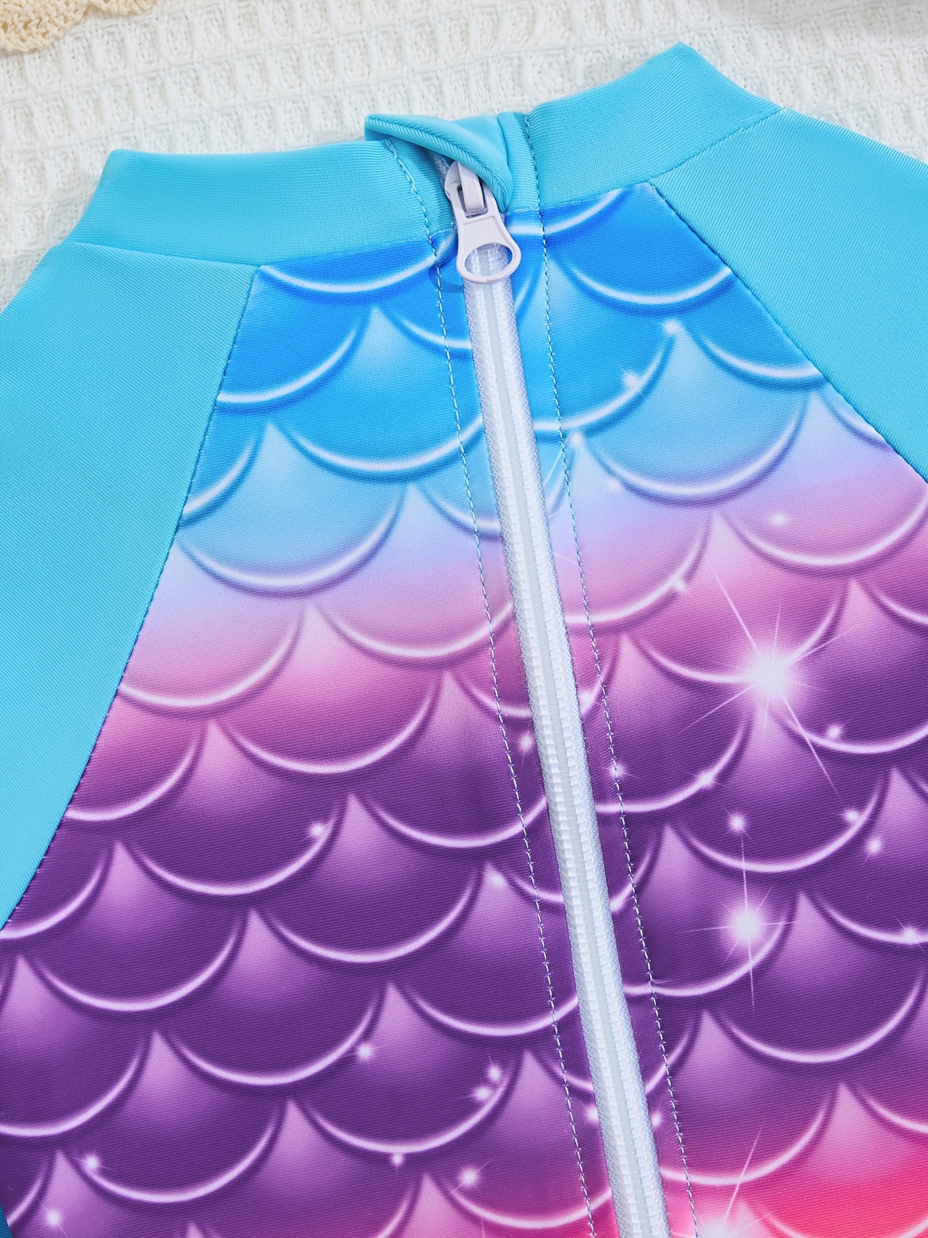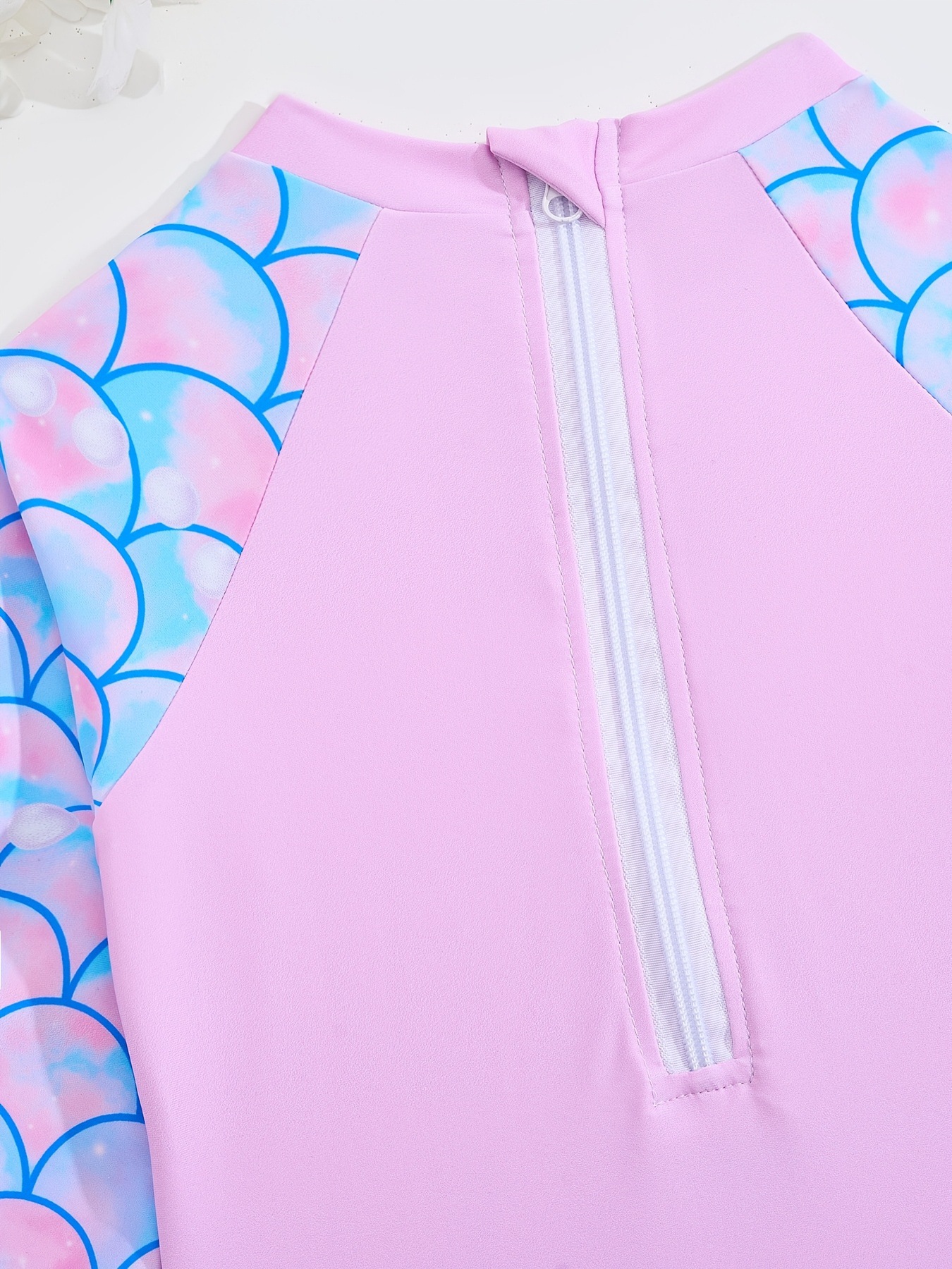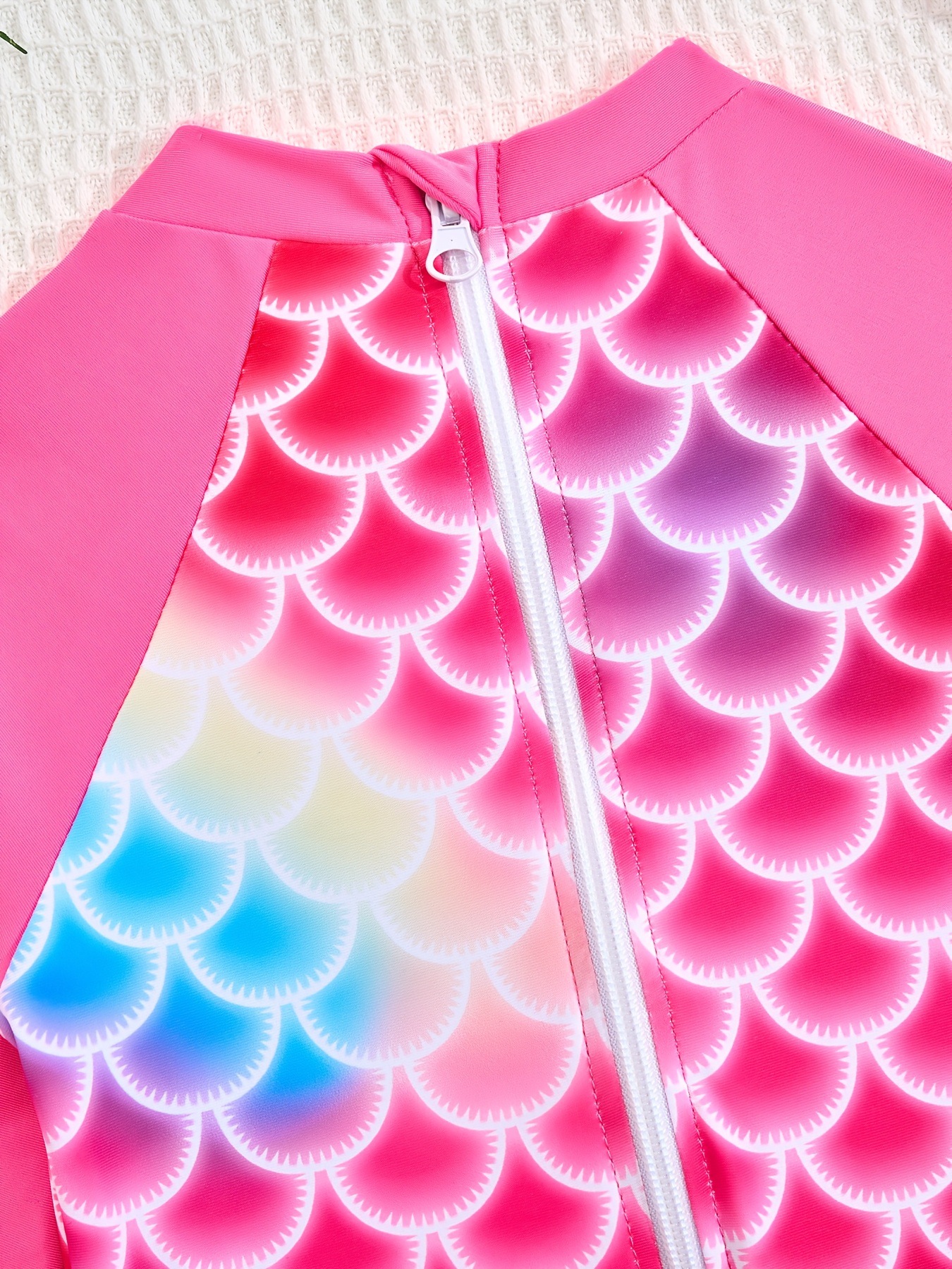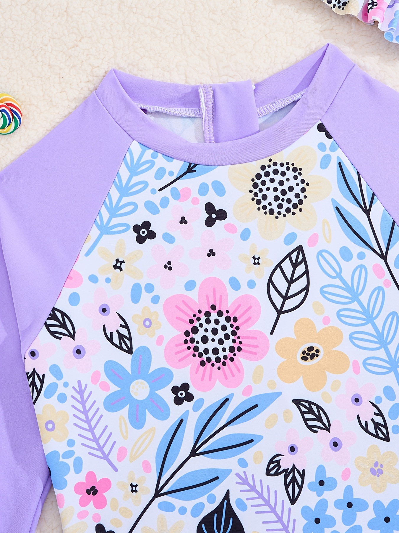 어린이 수영복 및 수영 모자 소녀 원피스 긴팔 수영복 중대형 2025 새로운 프릴 투피스 수영 세트스토어 가기