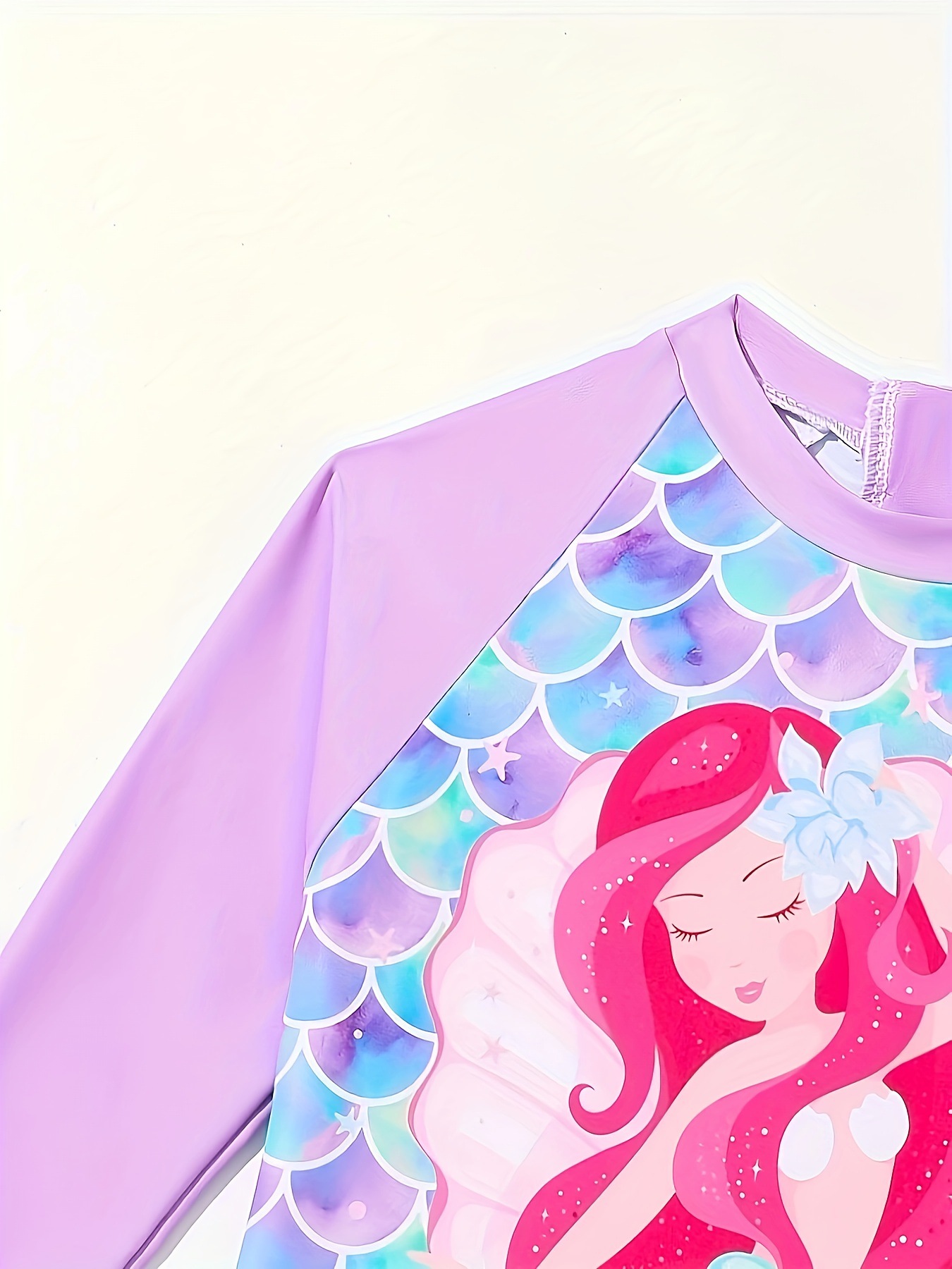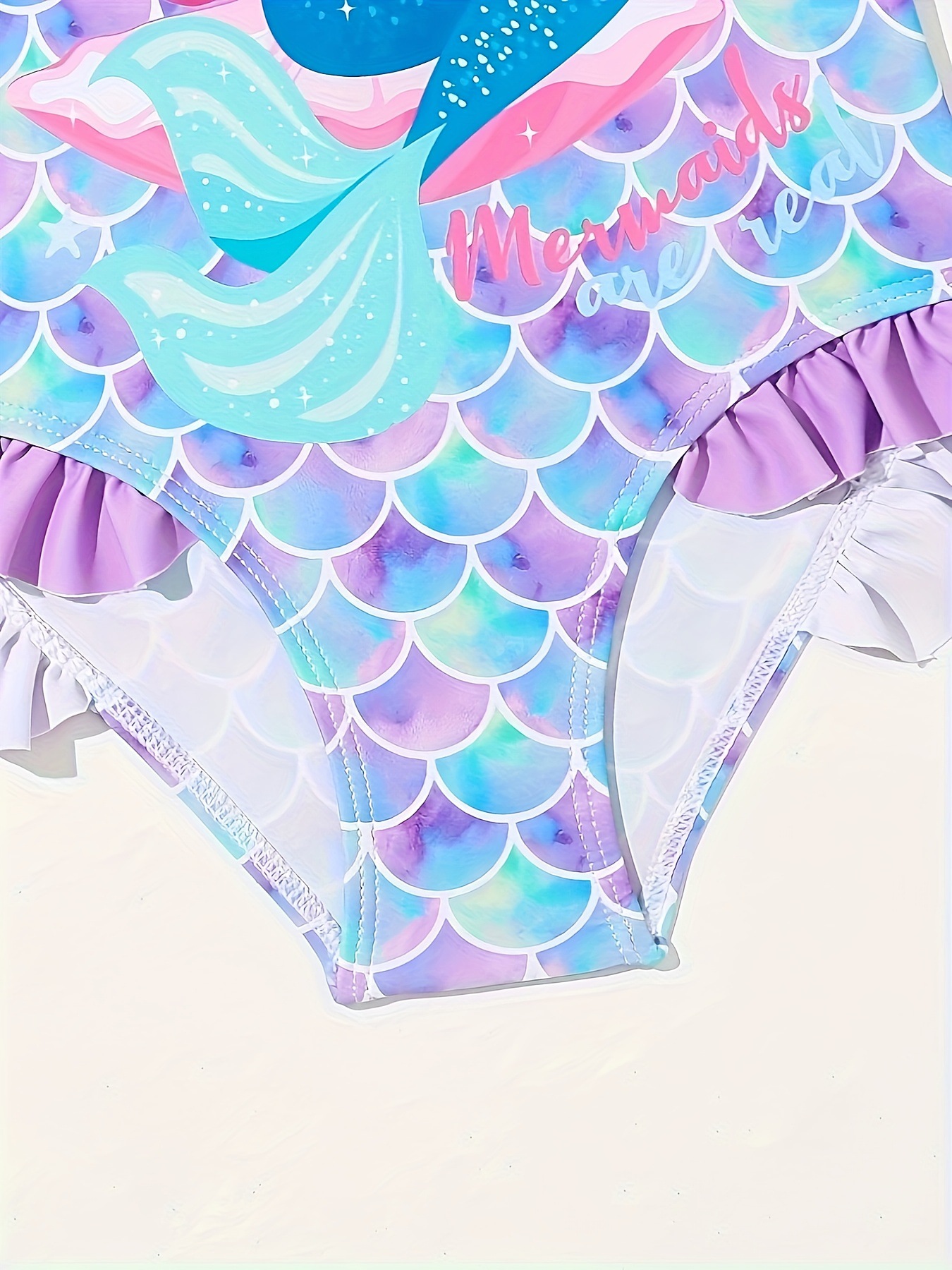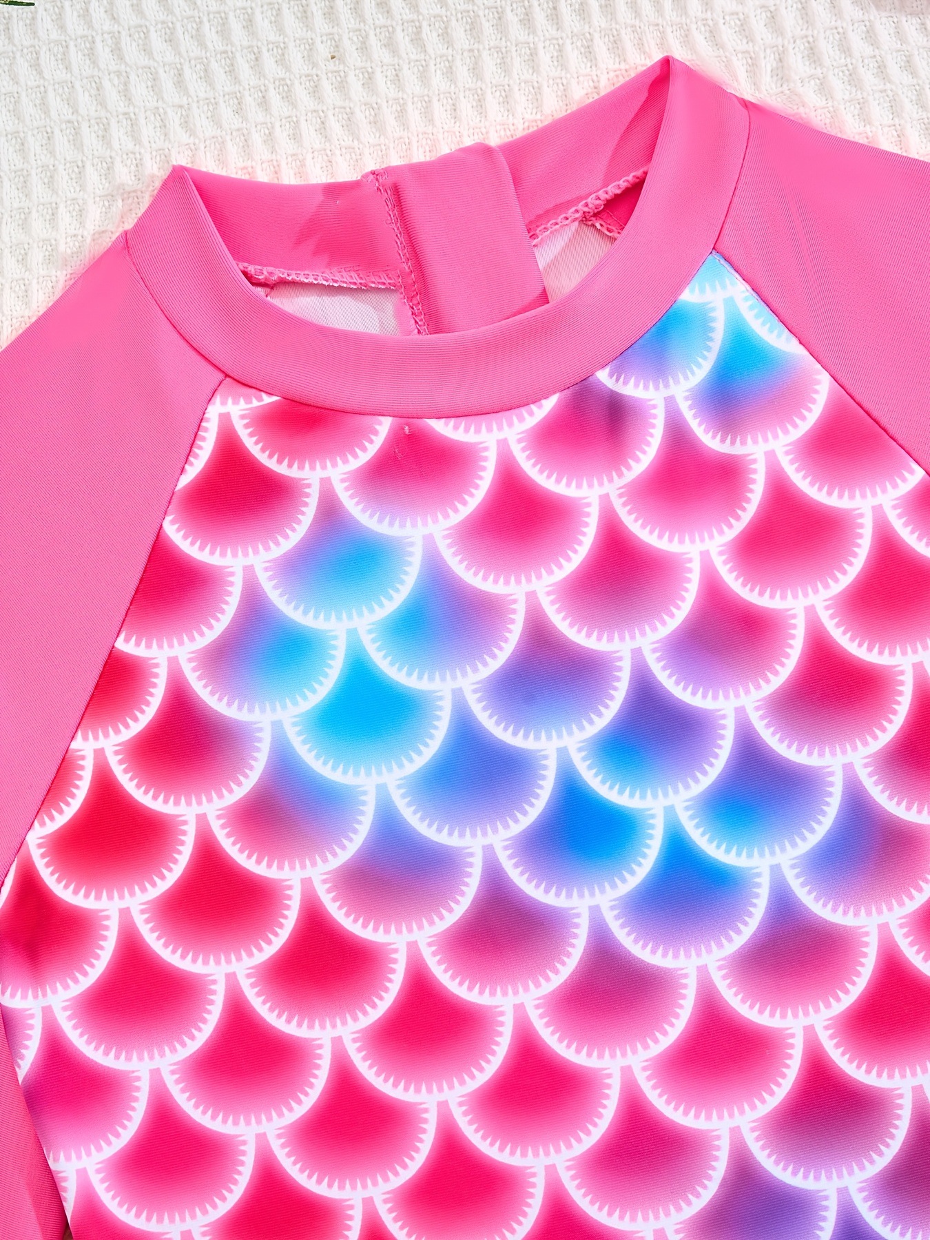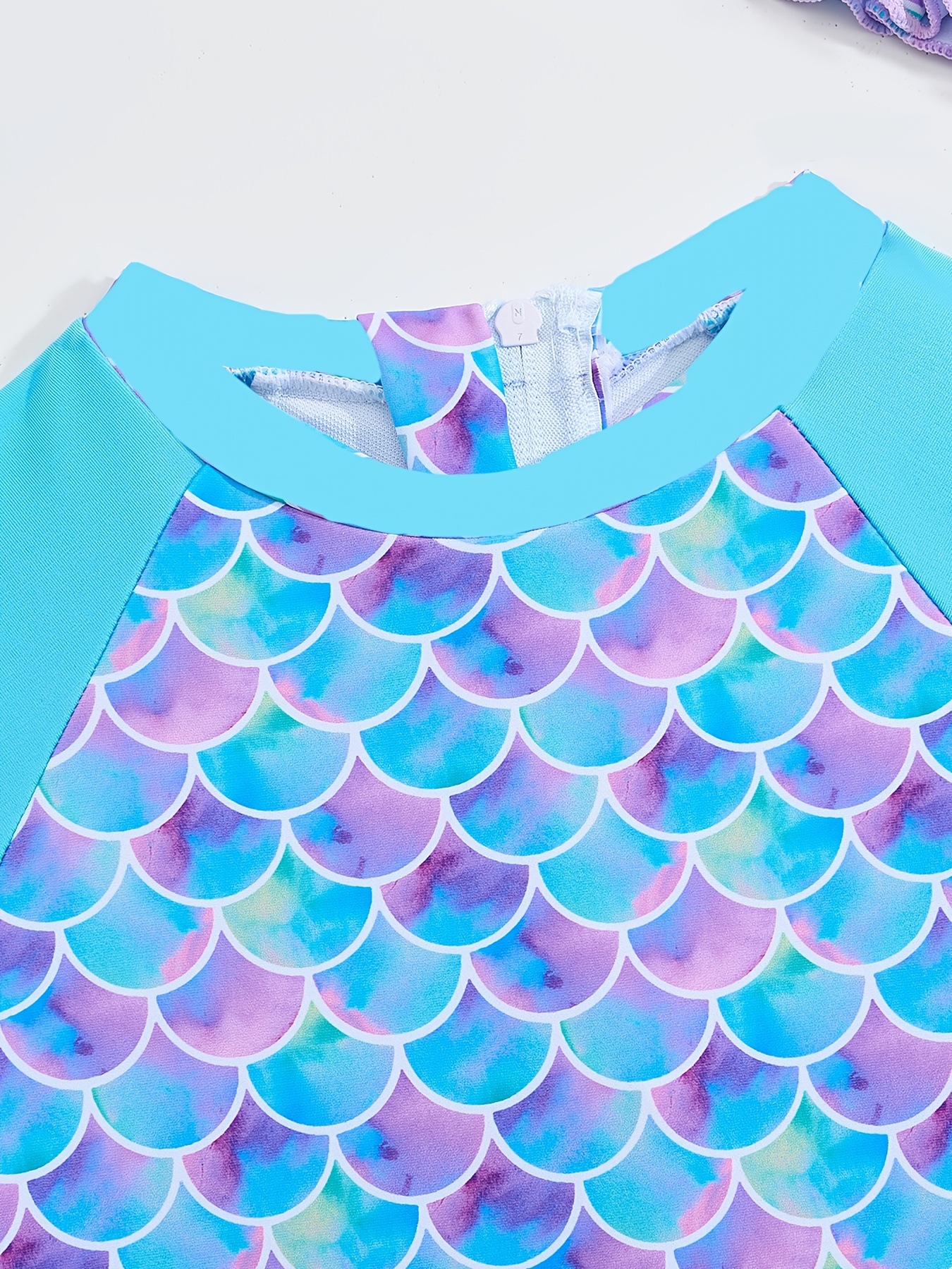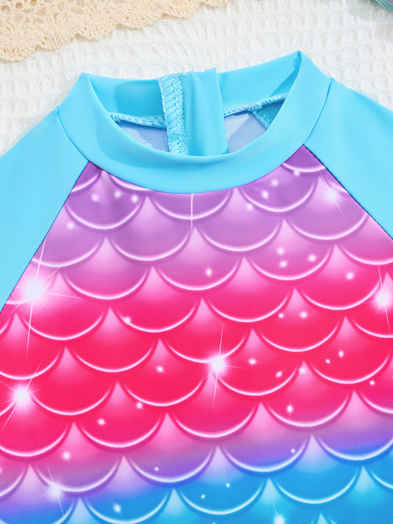 어린이 수영복 및 수영 모자 소녀 원피스 긴팔 수영복 중대형 2025 새로운 프릴 투피스 수영 세트스토어 가기
