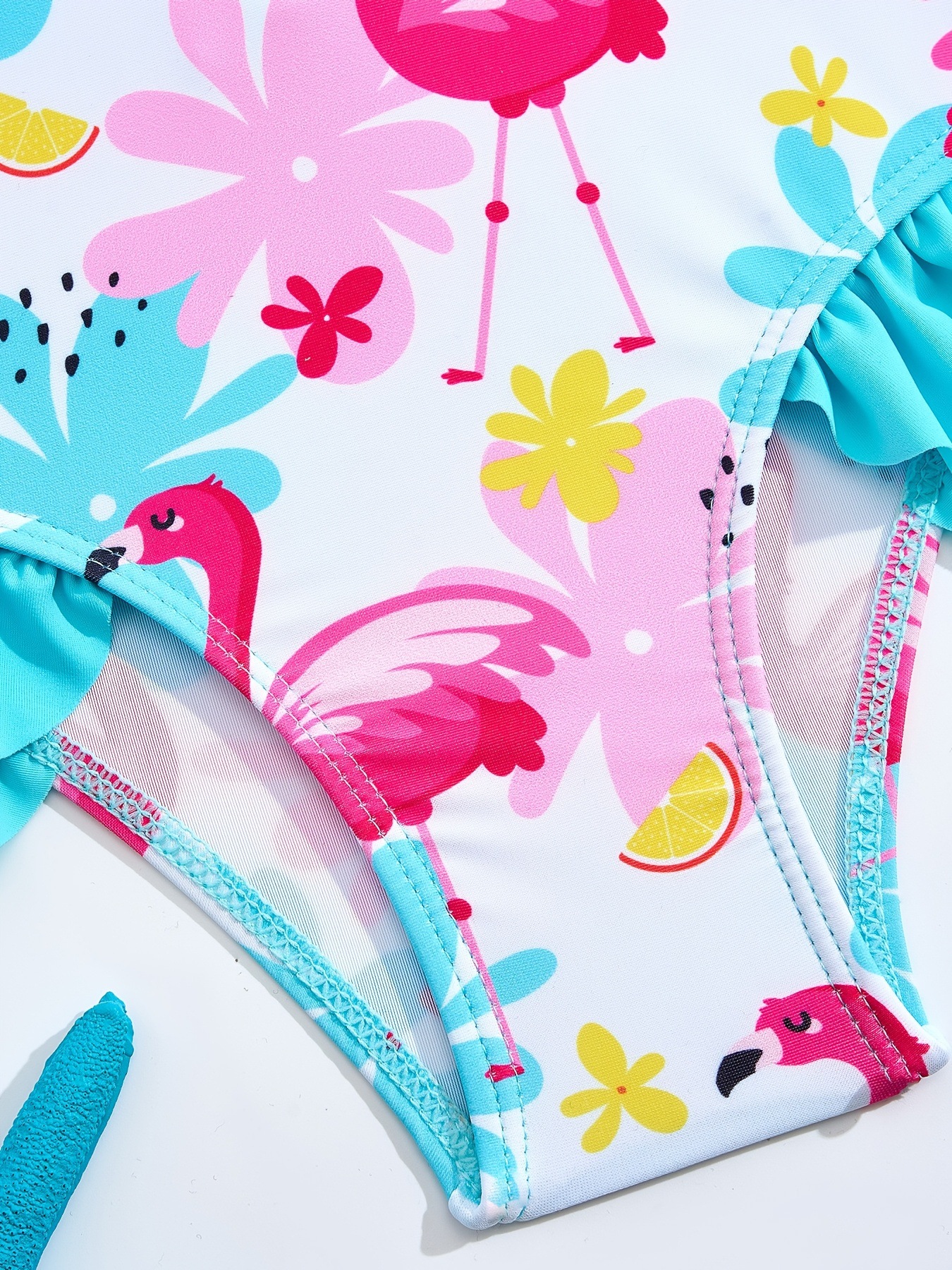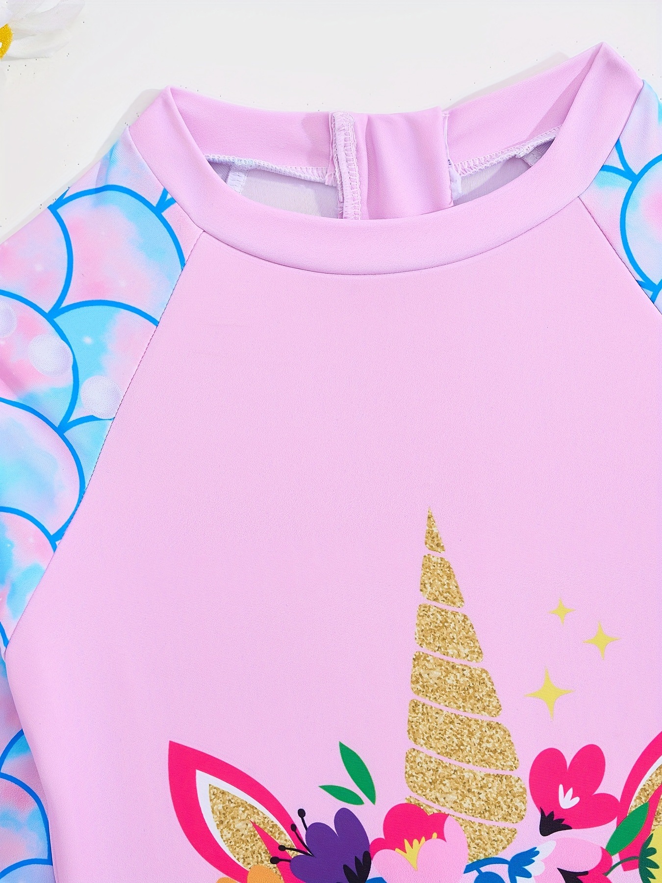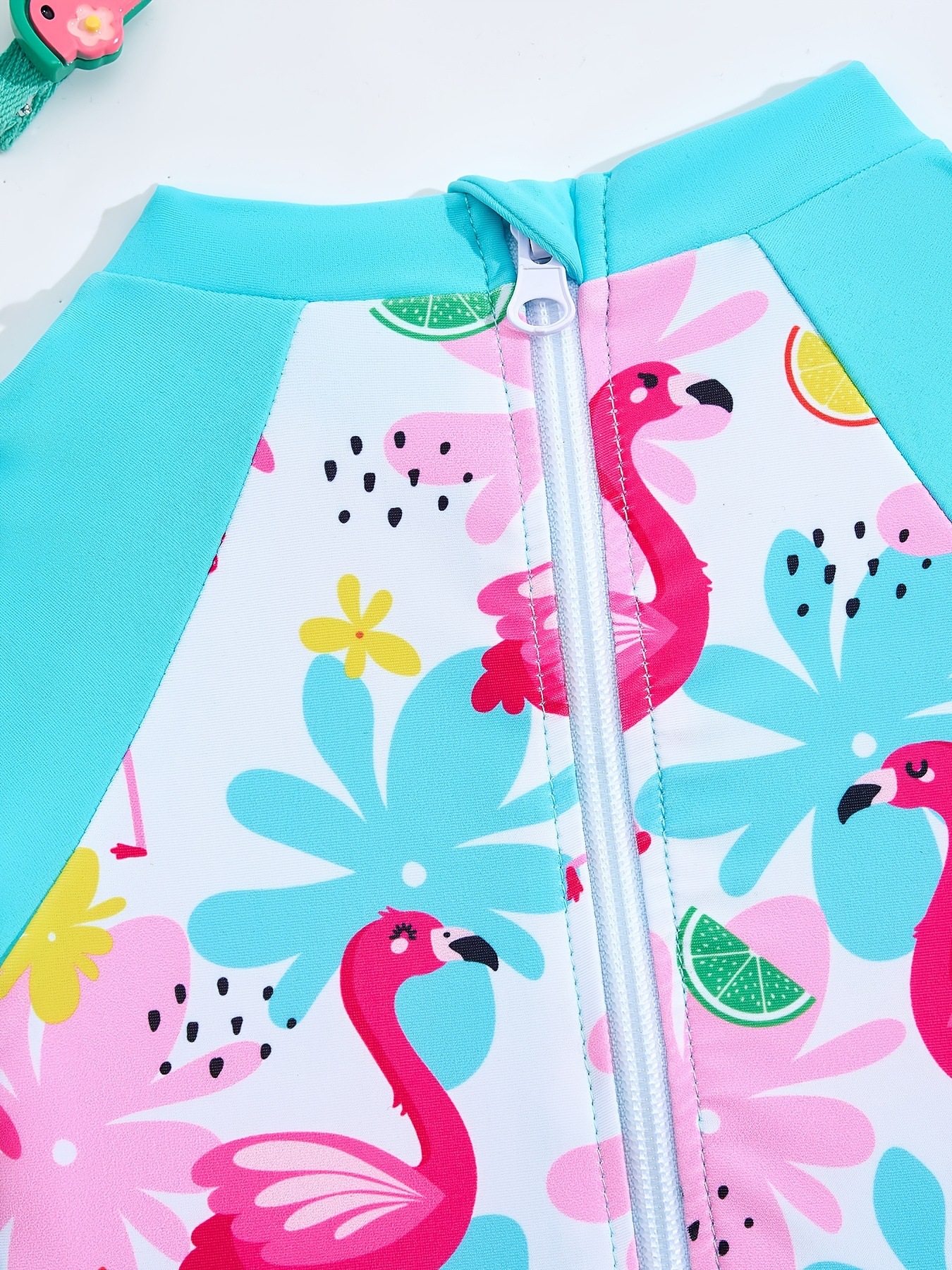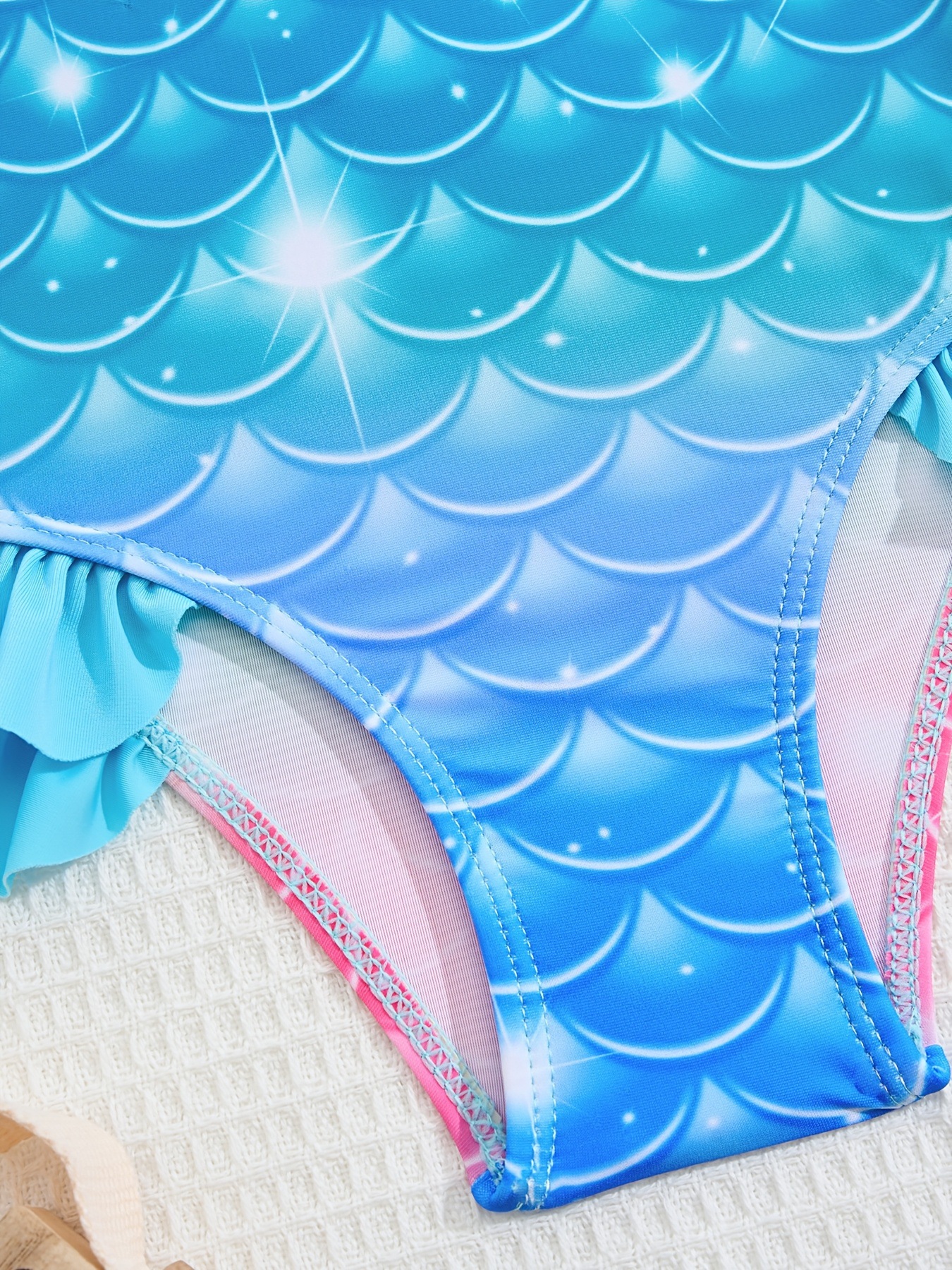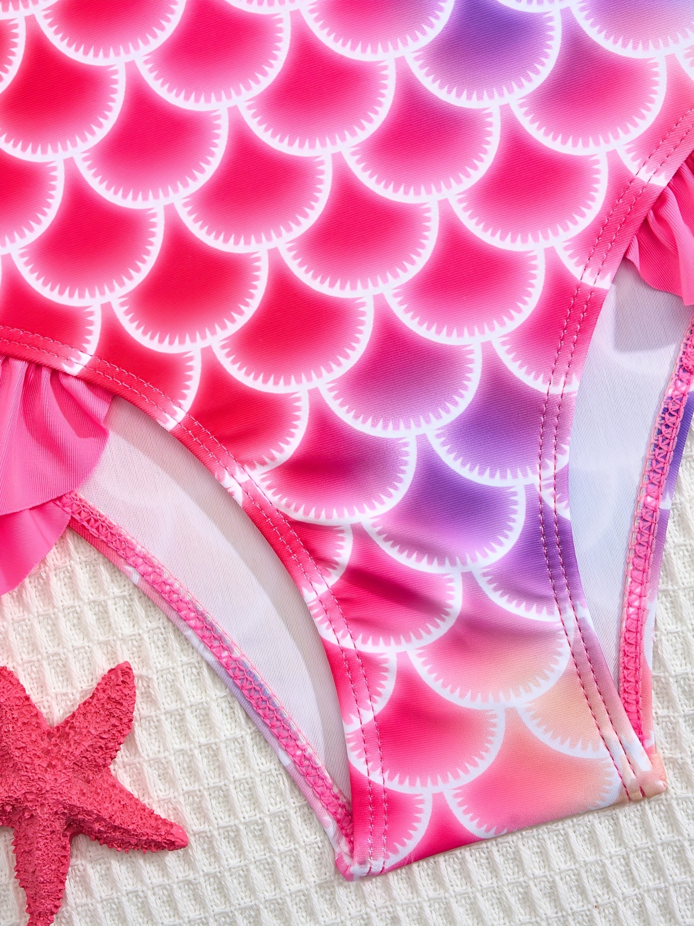 어린이 수영복 및 수영 모자 소녀 원피스 긴팔 수영복 중대형 2025 새로운 프릴 투피스 수영 세트스토어 가기