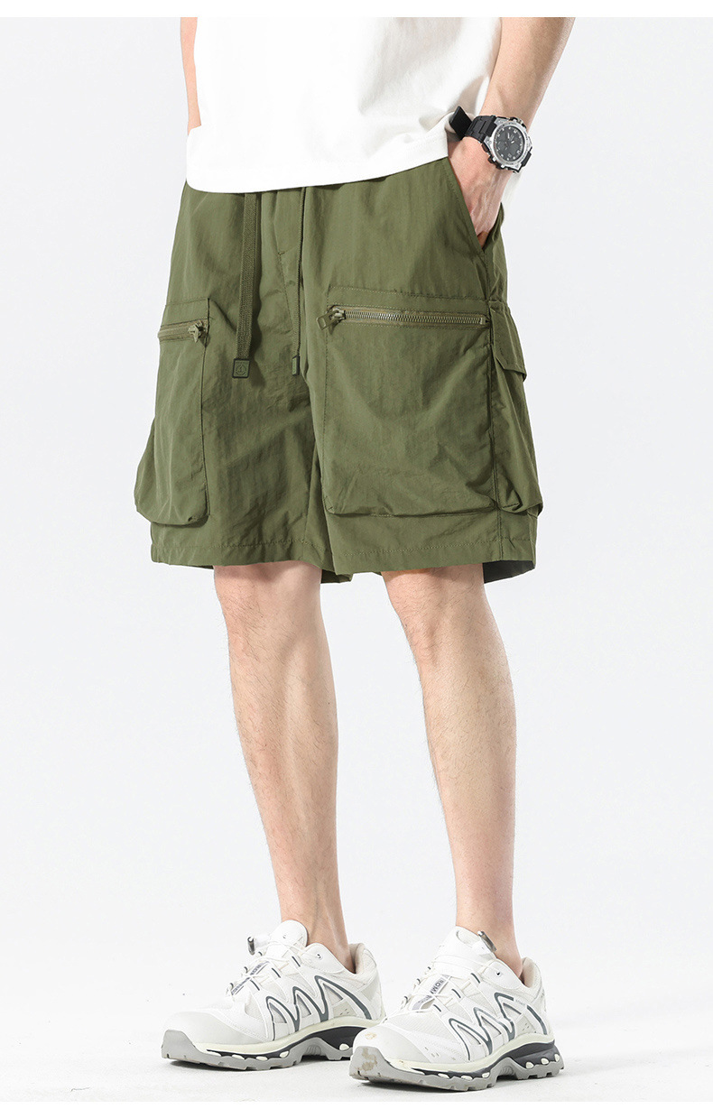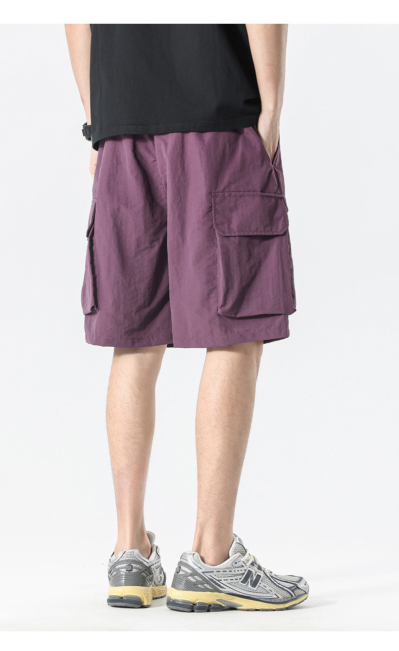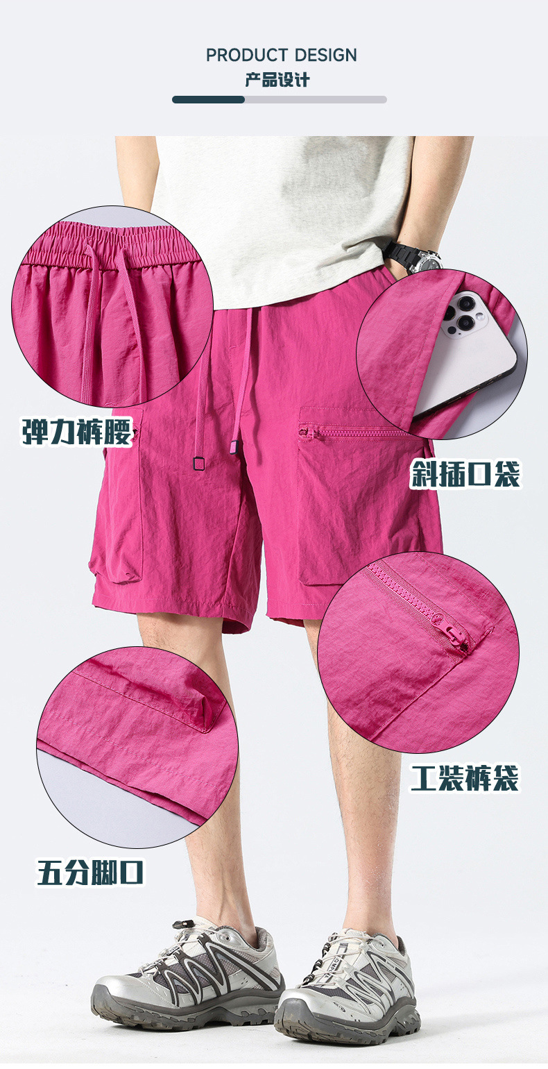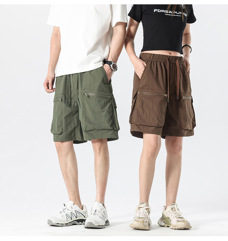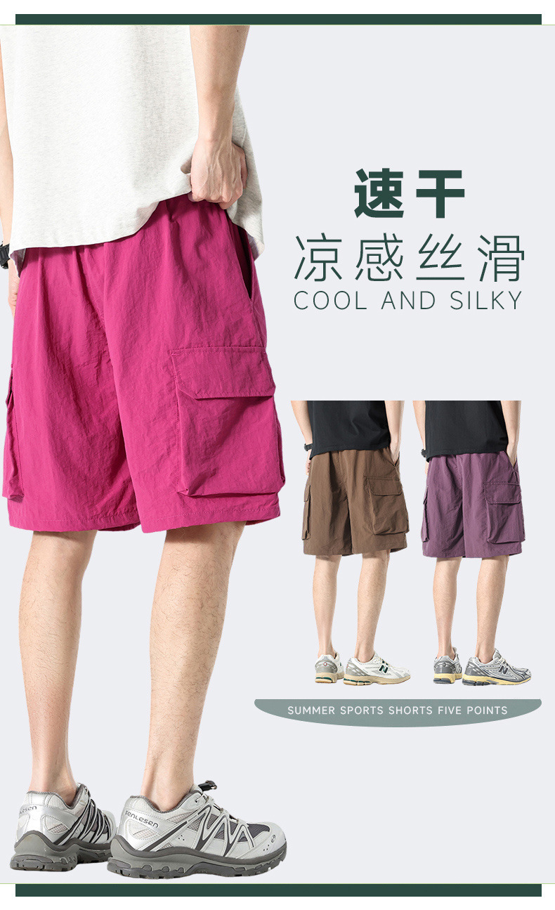 일본 유행 브랜드 대형 포켓 작업복 반바지 남성 여름 유행 플러스 사이즈 느슨한 스트레이트 얇은 캐주얼 바지