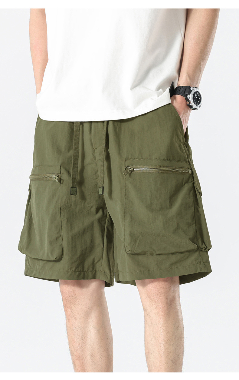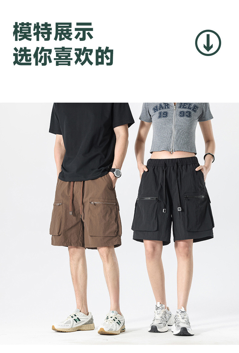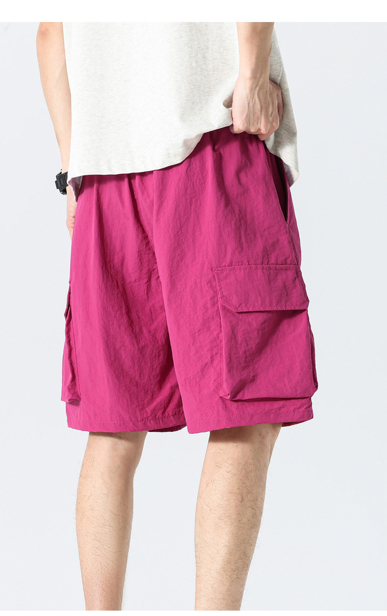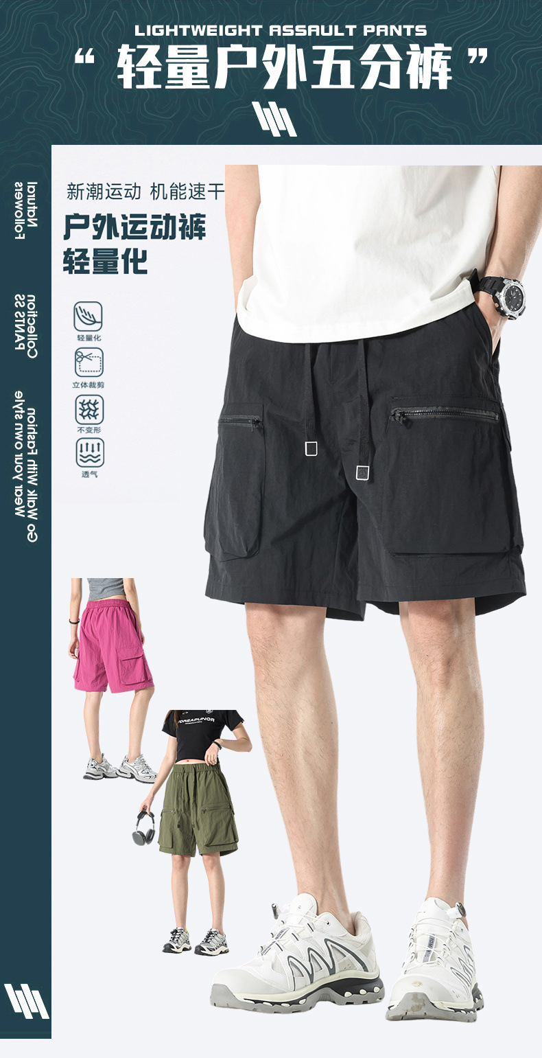 일본 유행 브랜드 대형 포켓 작업복 반바지 남성 여름 유행 플러스 사이즈 느슨한 스트레이트 얇은 캐주얼 바지